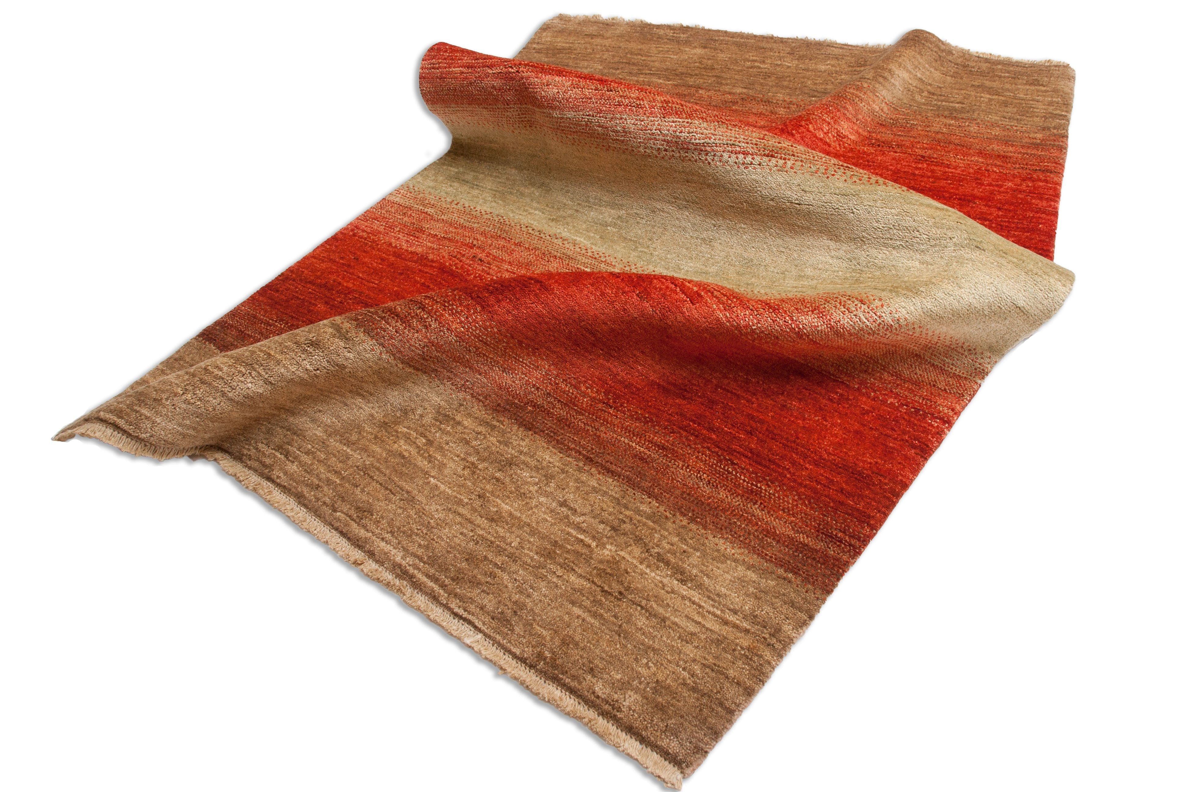 Dieser handgeknüpfte Lori Teppich hat einen dichten, relativ hohen Flor. Die Schafswolle, die für den Flor der Lori Teppiche verwendet wird, ist besonders hochwertig und fetthaltig. Lori Teppiche sind sehr gemütlich und strapazierfähig. Traditionell wurden Lori Teppiche – ebenso wie die Gabbeh – zum Schlafen benutzt. Sie laden zum sitzen und herumfläzen im Wohnzimmer ein, sind aber auch hervorragend für Durchgangsbereiche und im Essbereich geeignet. Der Flor der Lori Teppiche aus Schafswolle wird mit Naturfarben gefärbt und handgesponnen. Das verleiht den Loris ihre weiche Oberfläche. Handgesponnene Wolle ist immer etwas unregelmäßig. Beim Einfärben werden die natürlichen Farbstoffe unterschiedlich aufgenommen. Der Teppich wirkt lebendiger, es kommt zu sogenannten Farbsprüngen Abrasch, also Hell-Dunkel-Farbschattierungen. Die Farbtonänderungen des Florgarns verlaufen dabei immer immer quer zur Längsrichtung des Loris und machen den Teppich unempfindlich gegenüber Verschmutzungen. Die Schuss- und Kettfäden dieses Loris bestehen aus Baumwolle. Das vielseitige Material ist reißfest und dehnbar und daher besonders geeignet für ein strapazierfähiges Untergewebe.