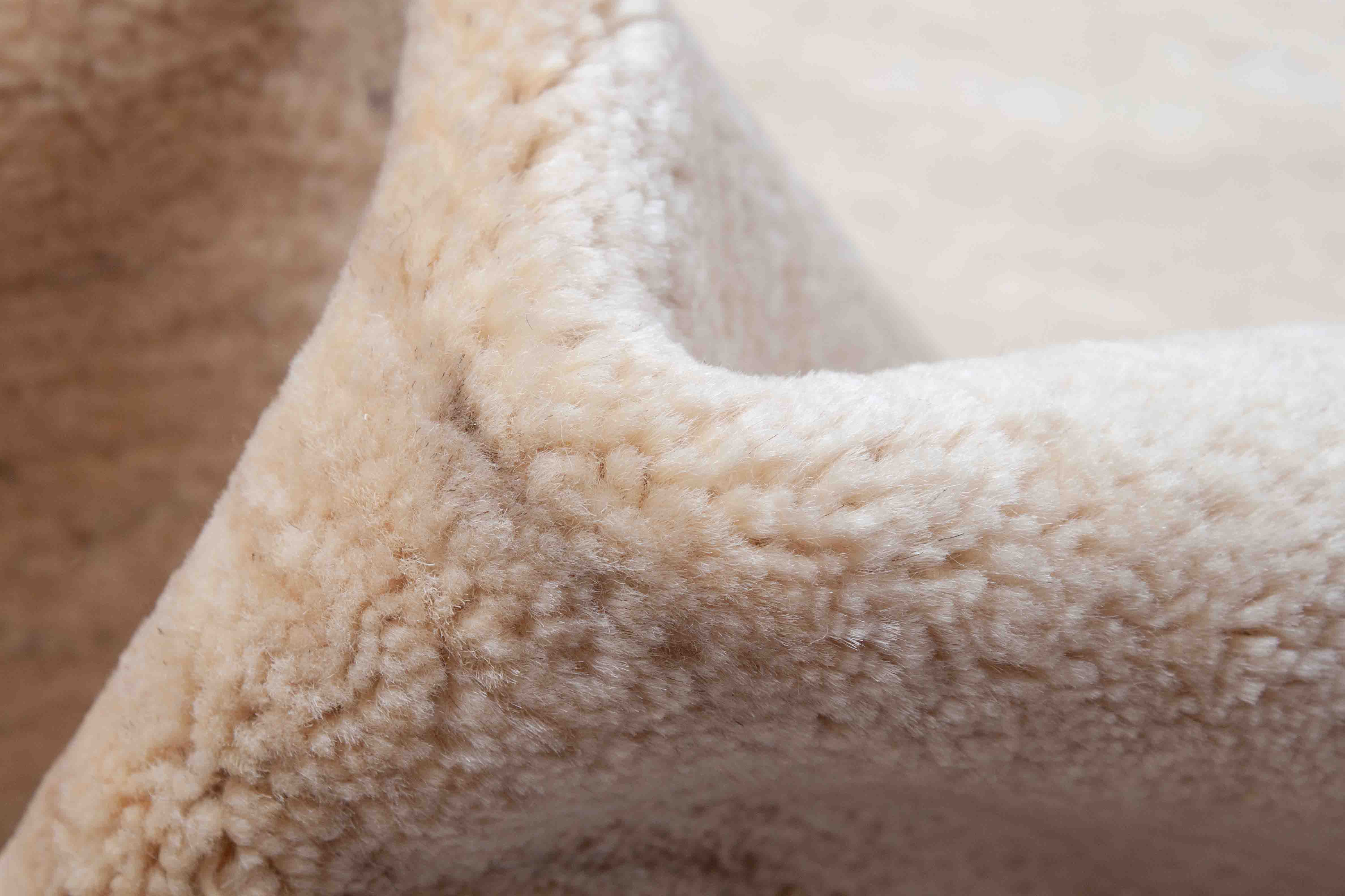 Dieser handgeknüpfte Lori Teppich hat einen dichten, relativ hohen Flor. Die Schafswolle, die für den Flor der Lori Teppiche verwendet wird, ist besonders hochwertig und fetthaltig. Lori Teppiche sind sehr gemütlich und strapazierfähig. Traditionell wurden Lori Teppiche – ebenso wie die Gabbeh – zum Schlafen benutzt. Sie laden zum sitzen und herumfläzen im Wohnzimmer ein, sind aber auch hervorragend für Durchgangsbereiche und im Essbereich geeignet. Der Flor der Lori Teppiche aus Schafswolle wird mit Naturfarben gefärbt und handgesponnen. Das verleiht den Loris ihre weiche Oberfläche. Handgesponnene Wolle ist immer etwas unregelmäßig. Beim Einfärben werden die natürlichen Farbstoffe unterschiedlich aufgenommen. Der Teppich wirkt lebendiger, es kommt zu sogenannten Farbsprüngen Abrasch, also Hell-Dunkel-Farbschattierungen. Die Farbtonänderungen des Florgarns verlaufen dabei immer immer quer zur Längsrichtung des Loris und machen den Teppich unempfindlich gegenüber Verschmutzungen. Die Schuss- und Kettfäden dieses Loris bestehen aus Baumwolle. Das vielseitige Material ist reißfest und dehnbar und daher besonders geeignet für ein strapazierfähiges Untergewebe.
