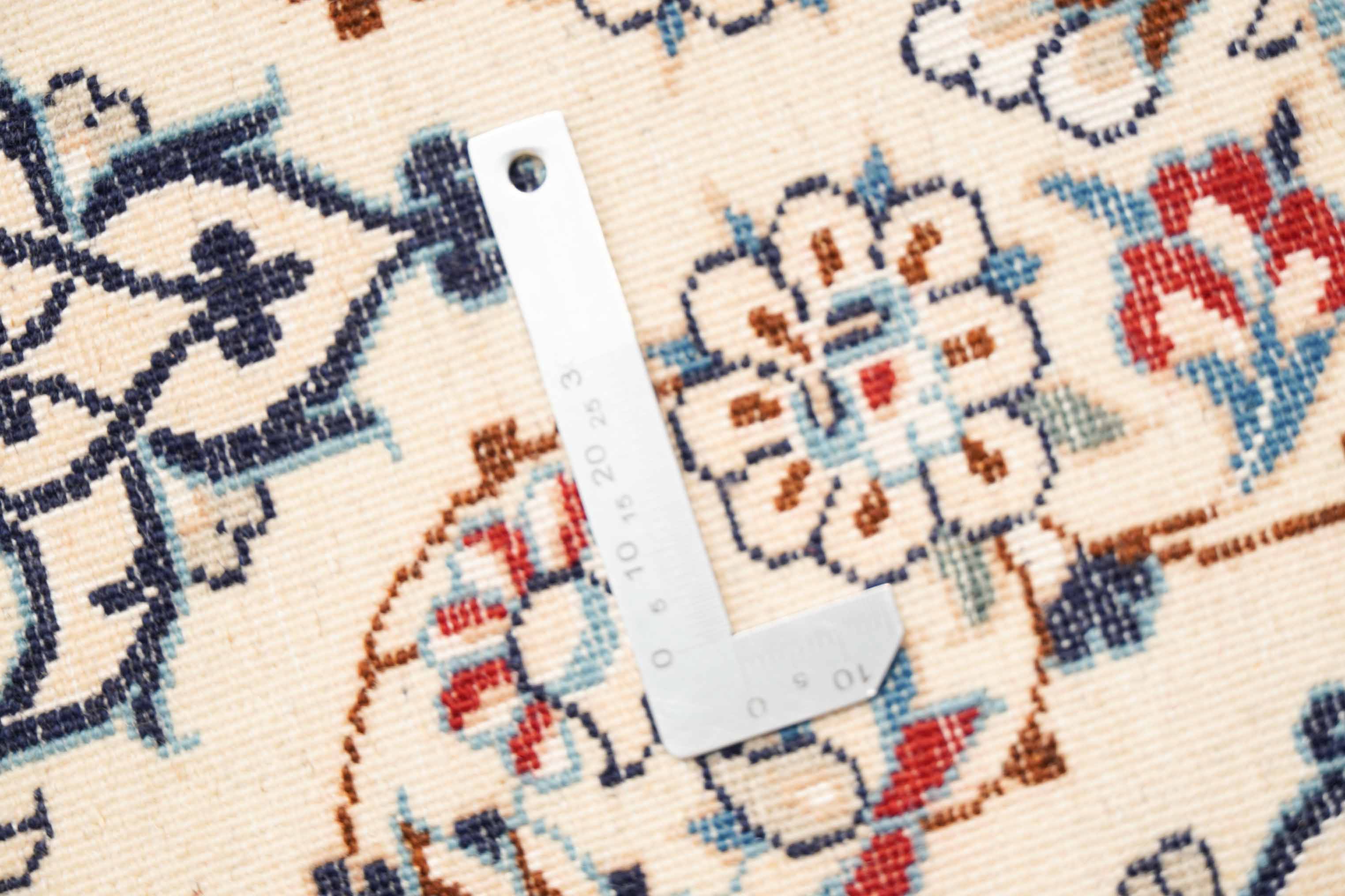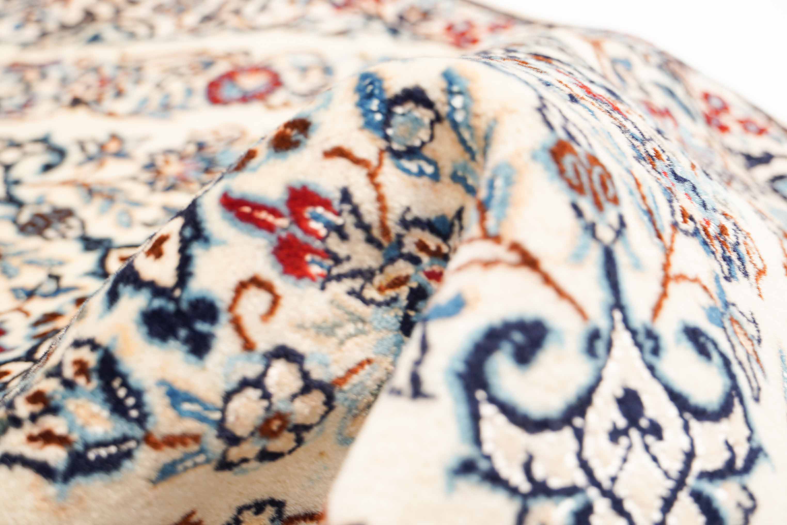 Dieser Nain hat eine Geschichte. Er wurde ca. 2005 handgeknüpft. Wir haben ihn gründlich gereinigt und liebevoll restauriert. Er ist daher – trotz seines Alters – in einem sehr guten Zustand.
