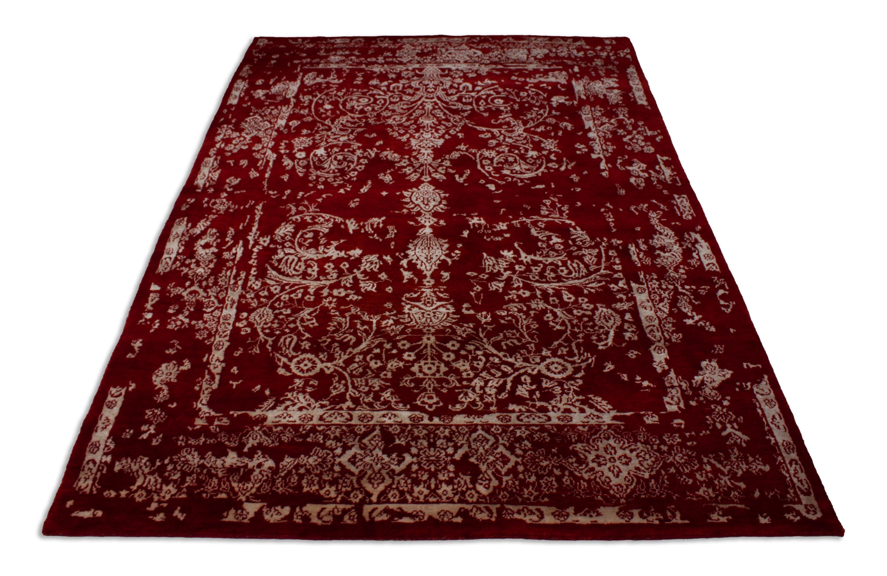 Das von klassischen orientalischen Ornamenten inspirierte Muster erzeugt den Eindruck, dieser handgeknüpfte Teppich hätte bereits eine lange Geschichte hinter sich. Das Muster wirkt als wäre es verwaschen oder verblichen und dadurch beinahe abstrakt. Tatsächlich ist dieser Neo Nain natürlich neu und Teil der jüngsten Generation zeitgenössischer Teppichdesigns. Er schlägt eine Brücke zwischen modernen Designs und Interieurs und klassischen orientalischen Motiven. Das Muster ist zurückhalten und ist dennoch präsent.