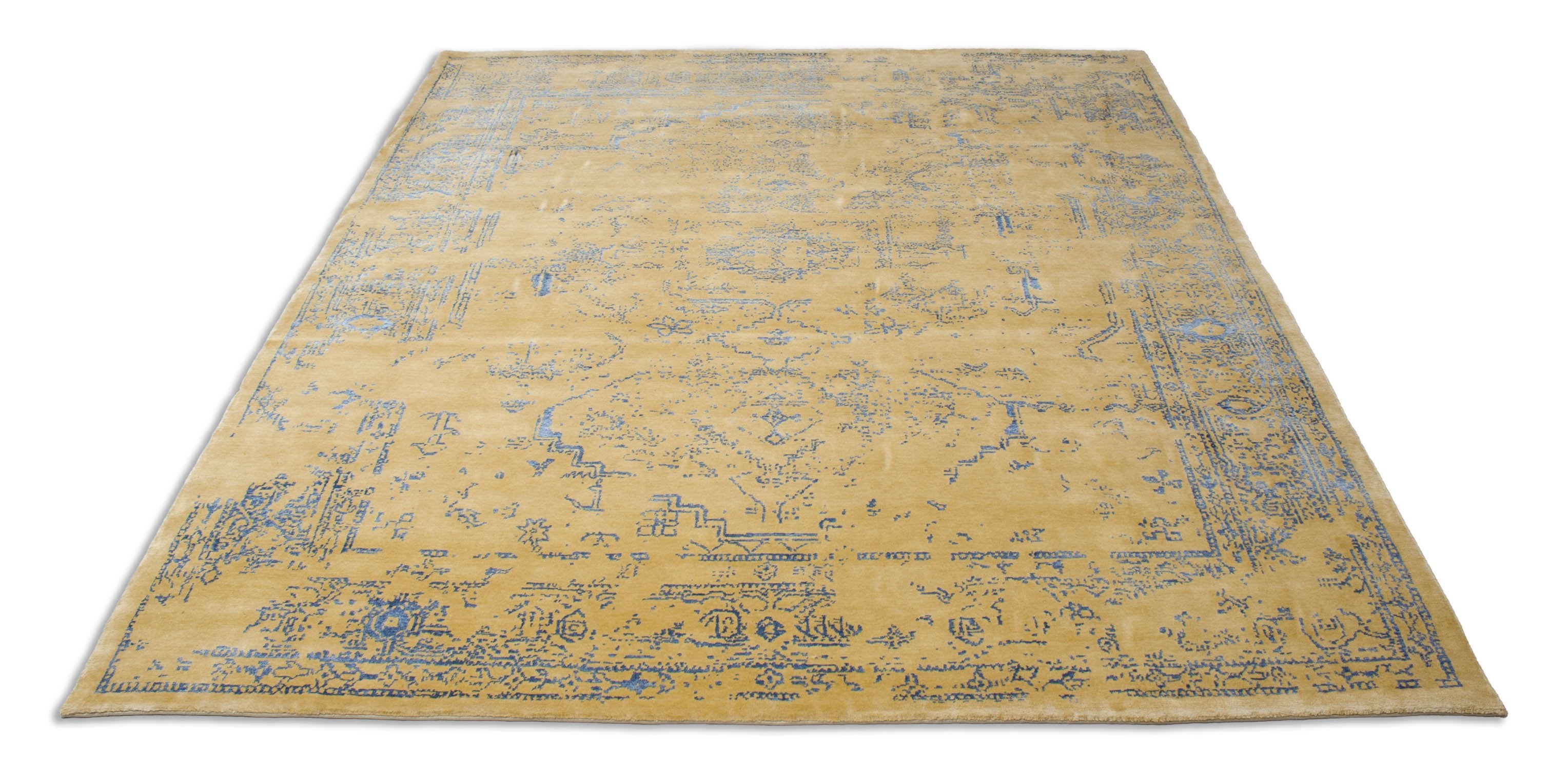 Das von klassischen orientalischen Ornamenten inspirierte Muster erzeugt den Eindruck, dieser handgeknüpfte Teppich hätte bereits eine lange Geschichte hinter sich. Das Muster wirkt als wäre es verwaschen oder verblichen und dadurch beinahe abstrakt. Tatsächlich ist dieser Neo Nain natürlich neu und Teil der jüngsten Generation zeitgenössischer Teppichdesigns. Er schlägt eine Brücke zwischen modernen Designs und Interieurs und klassischen orientalischen Motiven. Das Muster ist zurückhalten und ist dennoch präsent.