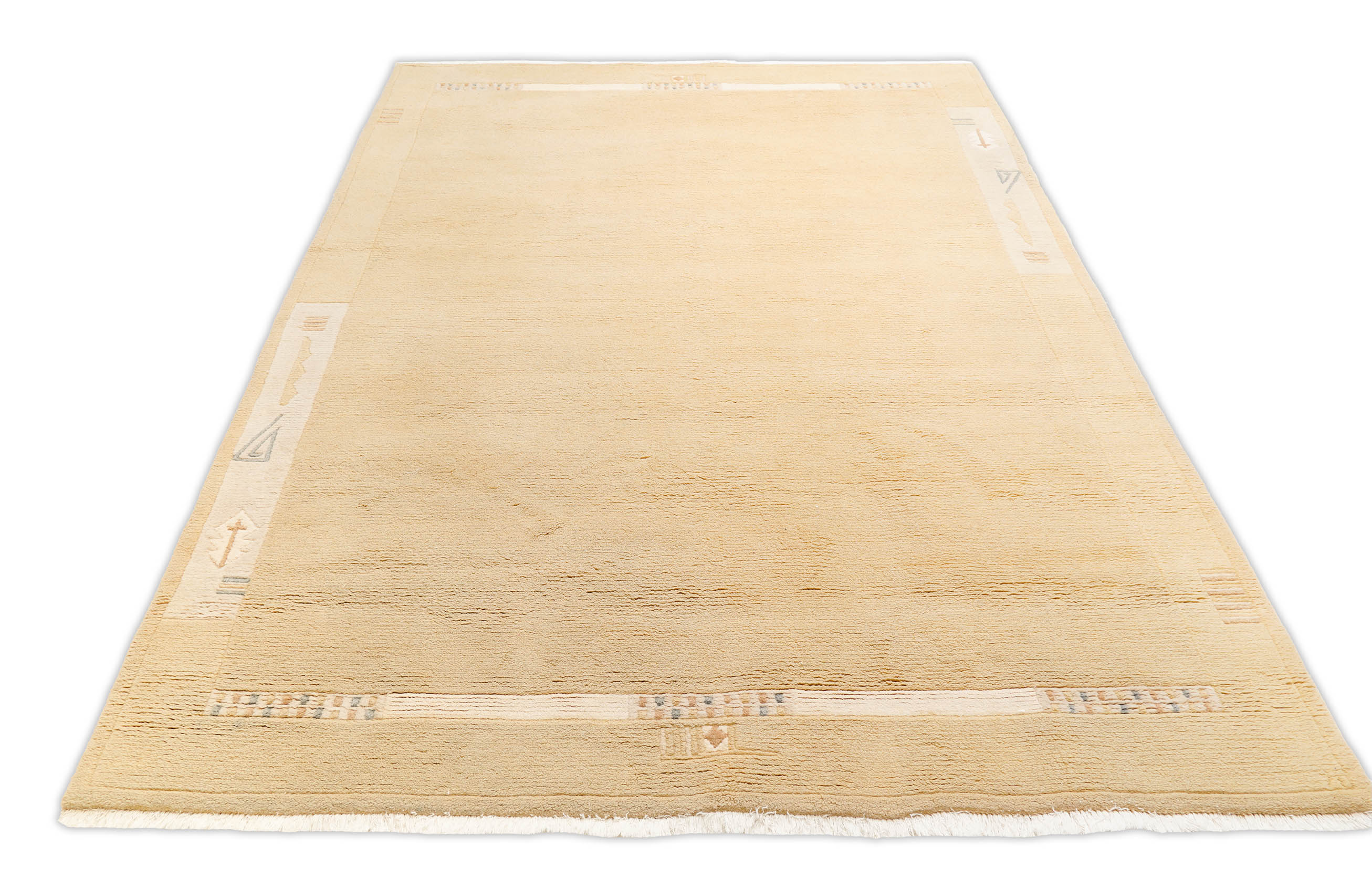 Leicht eingerahmter Nepal Teppich, beigegelb