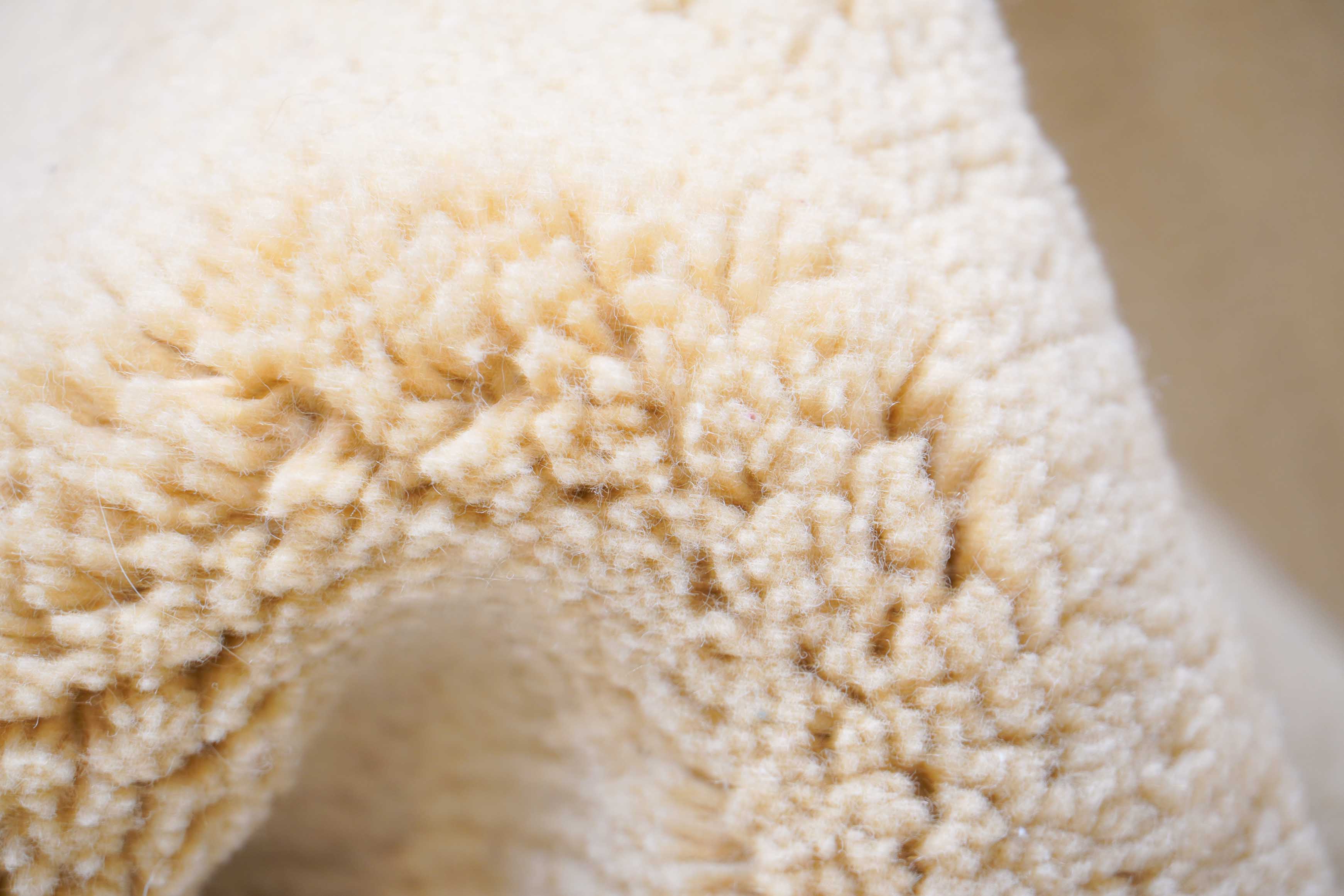 Der Flor dieses Nepal Teppichs wurde aus hochwertiger Schurwolle handgeknüpft. Schurwolle wird durch das schonende Scheren von Schafen gewonnen. Schurwolle ist ein nachwachsender, natürlicher Rohstoff mit einer Reihe beeindruckender Eigenschaften: Durch den natürlichen Fettgehalt der Wolle stößt die Oberfläche Wassertropfen ab und ist so auf natürliche Weise gegen Schmutz imprägniert. Wolle bietet außerdem eine hervorragende Wärmeisolation, wirkt regulierend auf das Wohnklima und dämpft den Schall. Die Schuss- und Kettfäden dieses Nepal Teppichs bestehen aus Baumwolle. Das vielseitige Material ist reißfest und dehnbar und daher besonders geeignet für ein strapazierfähiges Untergewebe.