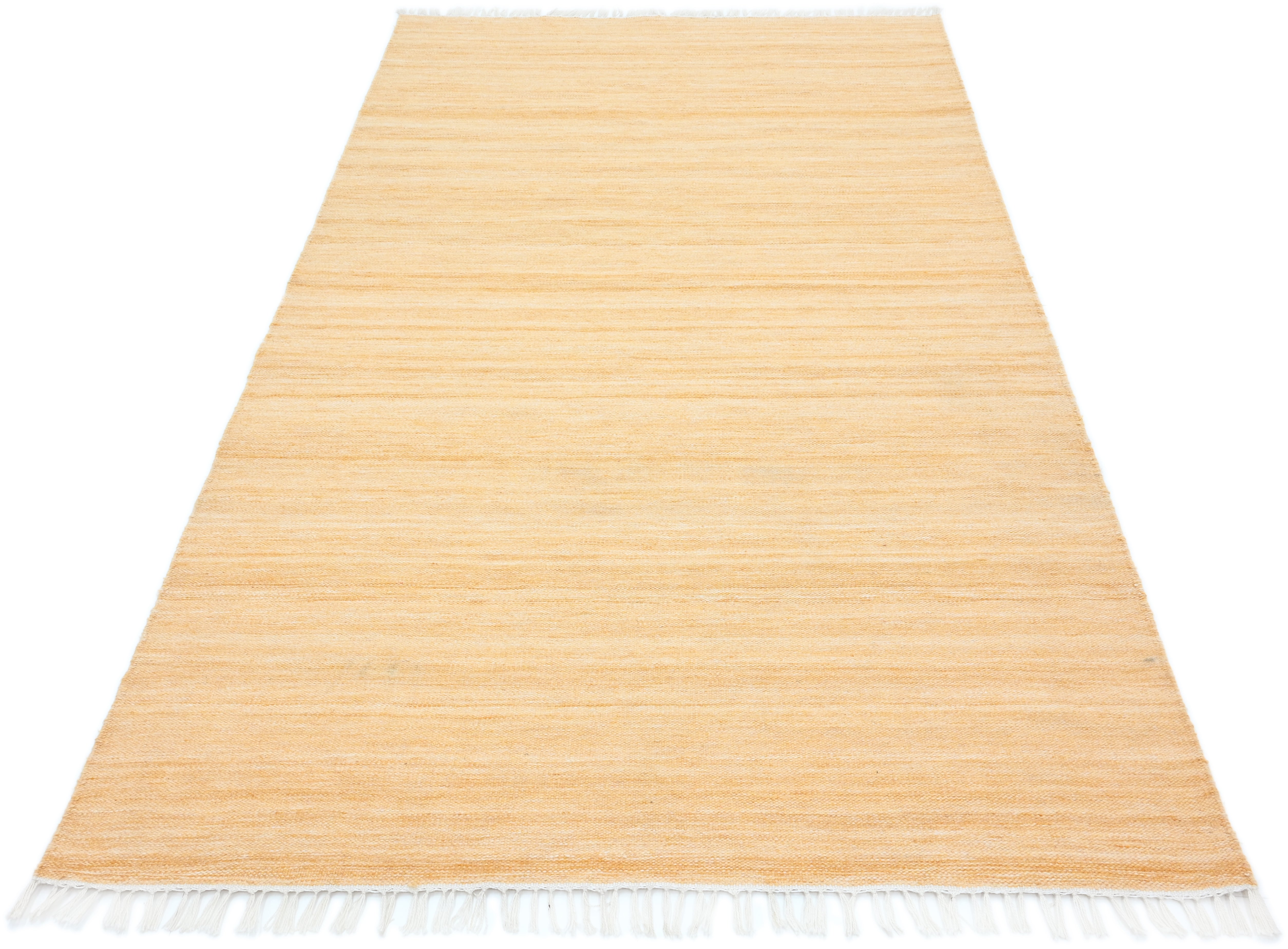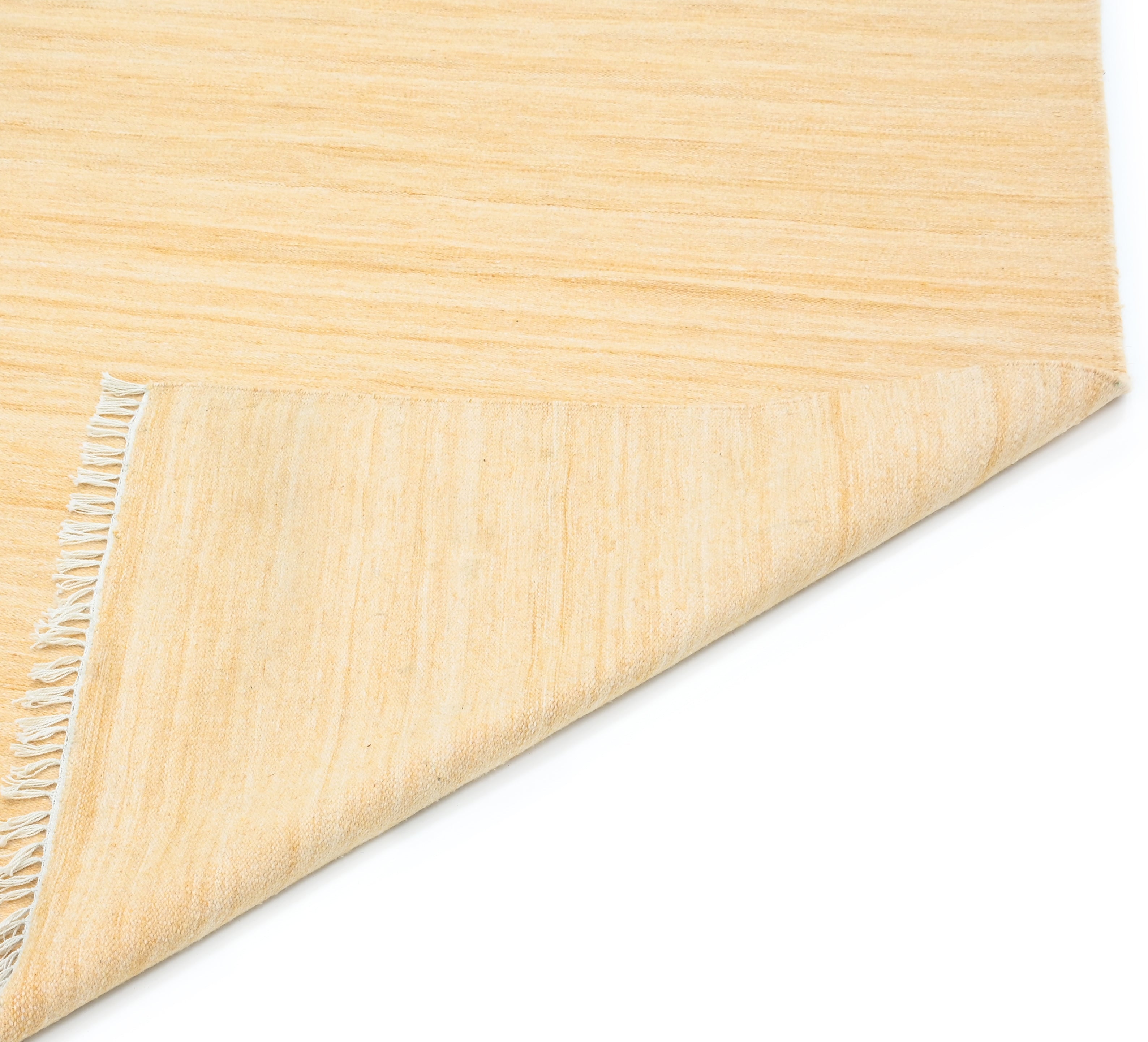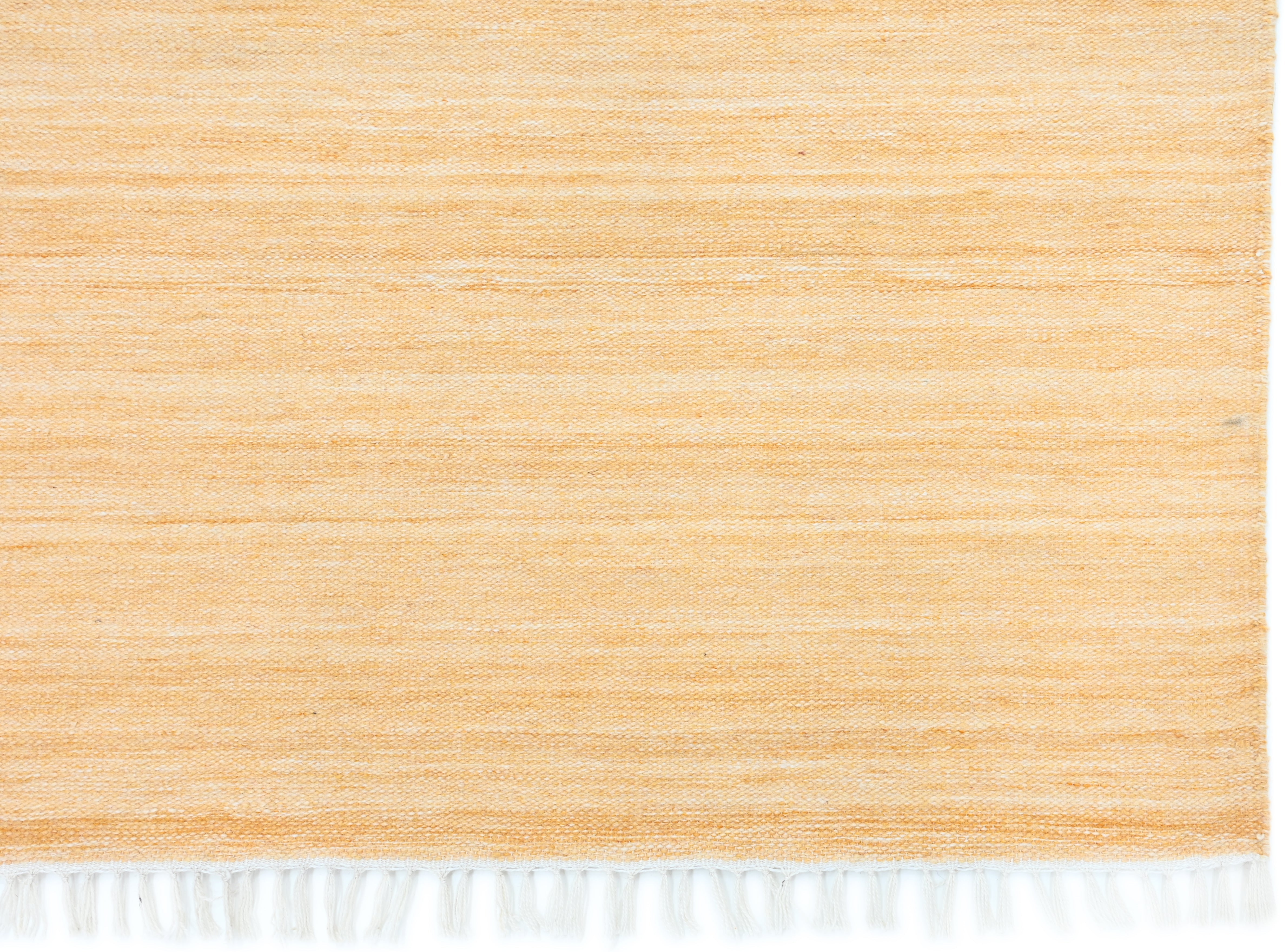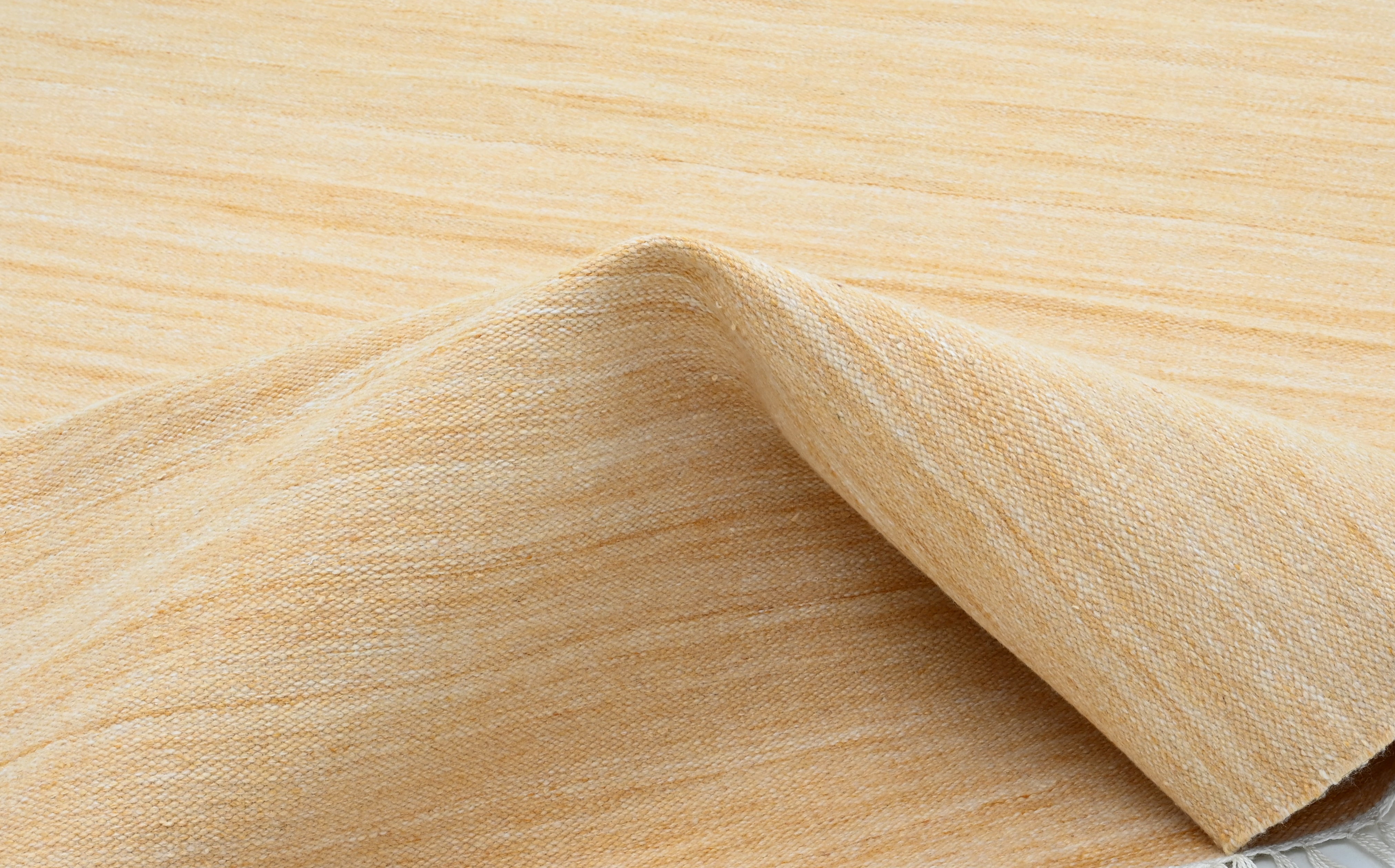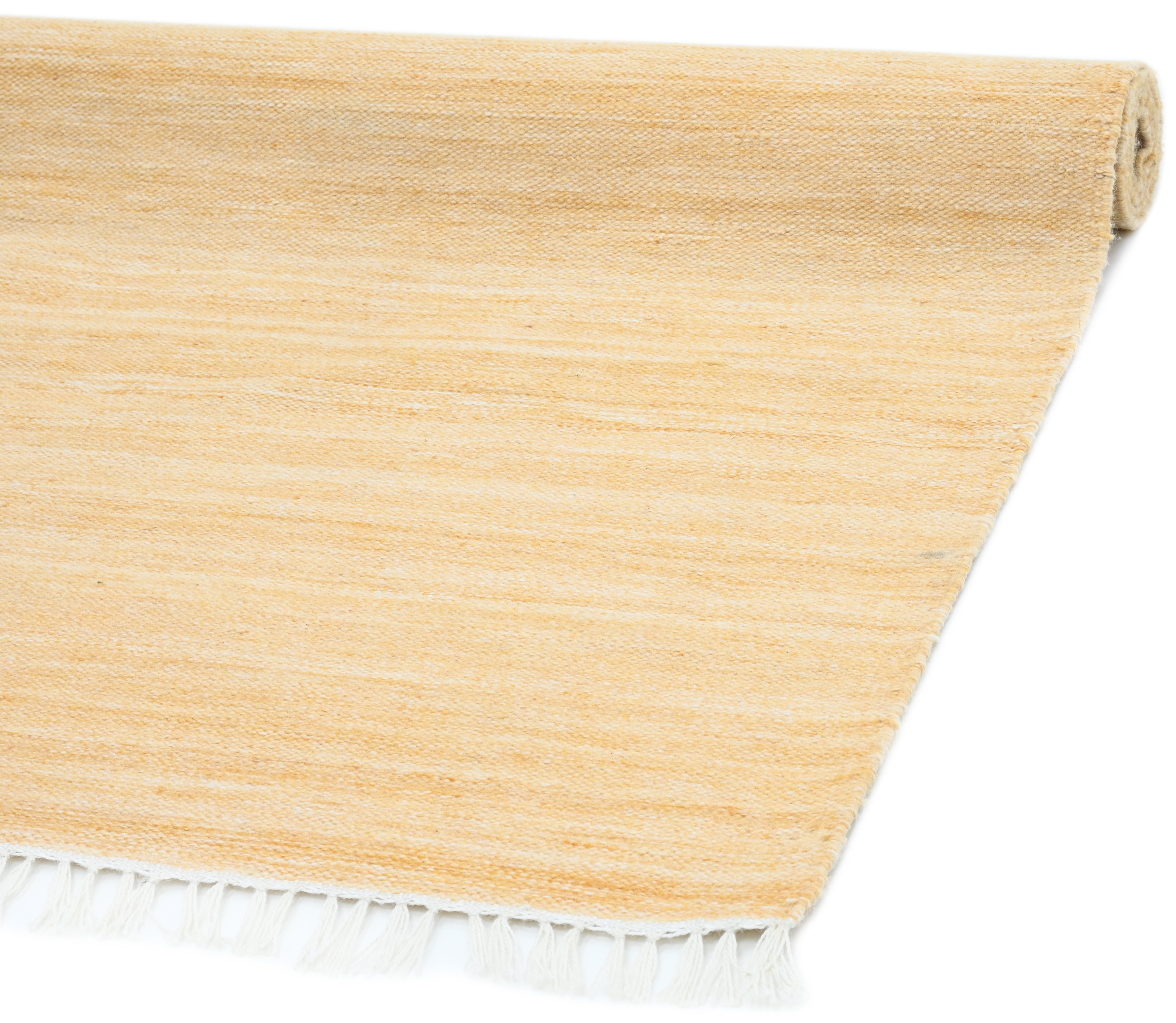 Die Haptik dieses Teppichs ist erstaunlich weich und erinnert an die eines Kelims aus Wolle. Ein Unterschied zu anderen gewebten Teppichen aus Wolle oder Baumwolle ist kaum zu spüren.