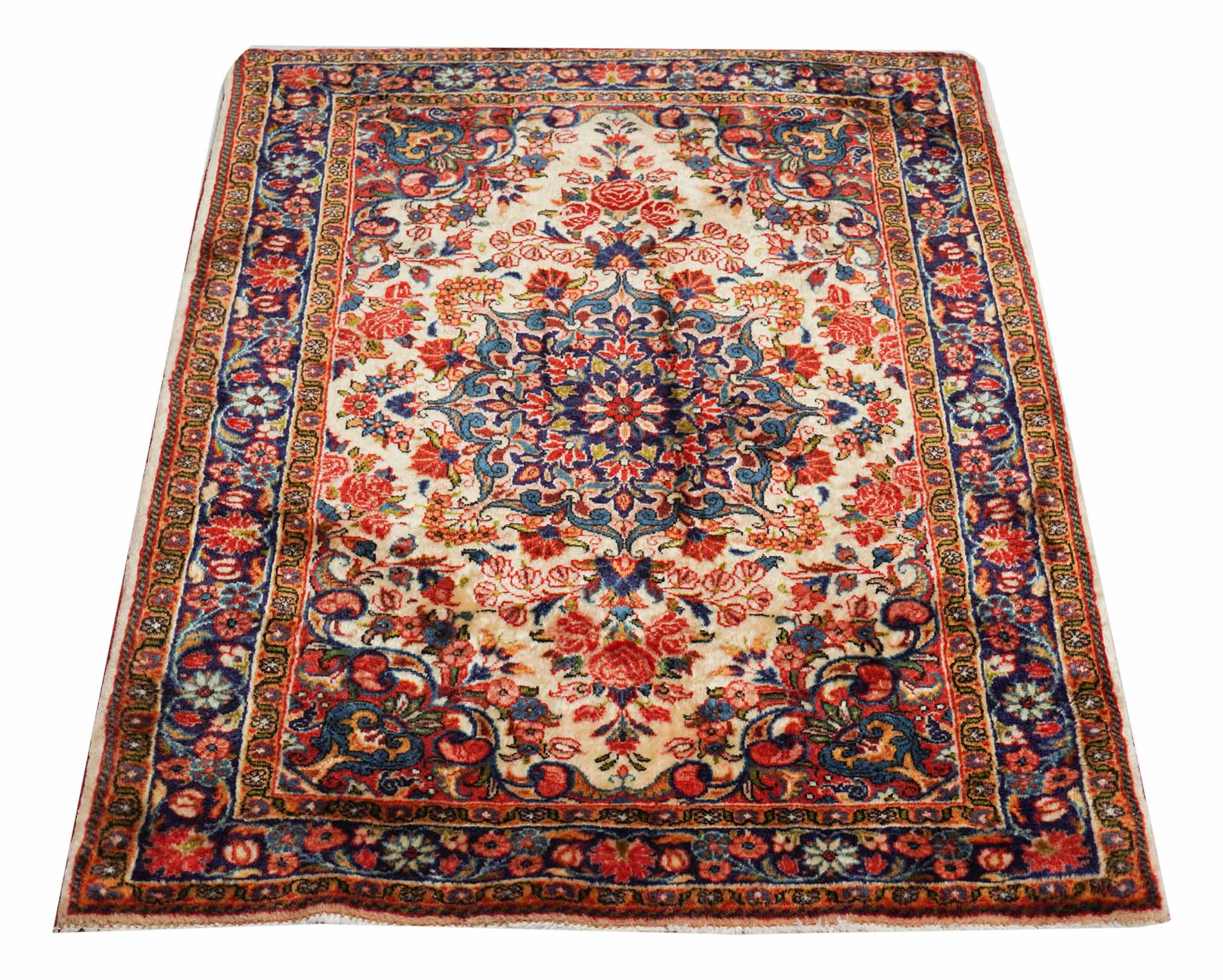 Dieser Teppich stammt aus Sarough (auch Sarouk, Saruk oder Sarogh). Sarough zählt zu den bekanntesten Teppich-Knüpfgebieten des Irans. Gelegen in der westpersischen Provinz Aarak umfasst es die Provinienzen Arak, Djozan, Ghiasabad, Mahal, Malayer, Mohajeran, Sultanabad und Wiss. In Sarough werden Persermuster aller Gattungen, zum Teil auch nach Angaben der Besteller geknüpft. Mit Vorliebe werden auch die benachbarten Farahan sowie die eigenen Sultanabad Designs und das aus Paisley Motiven bestehende, sogenannte Mir-i-Boteh-Muster realisiert. Typisch für diese Teppichgattung ist die sehr gute Wollqualität des Flors; denn die Schurwolle stammt aus dem persischen Hochland. Das Untergewebe – Kette und Schuss – besteht allerdings in der Regel aus Baumwolle. Bei alten und antiken Teppichen findet man häufig einen blauen Schussfaden. Die Knüpfungen sind sehr fein und der Flor relativ hoch.