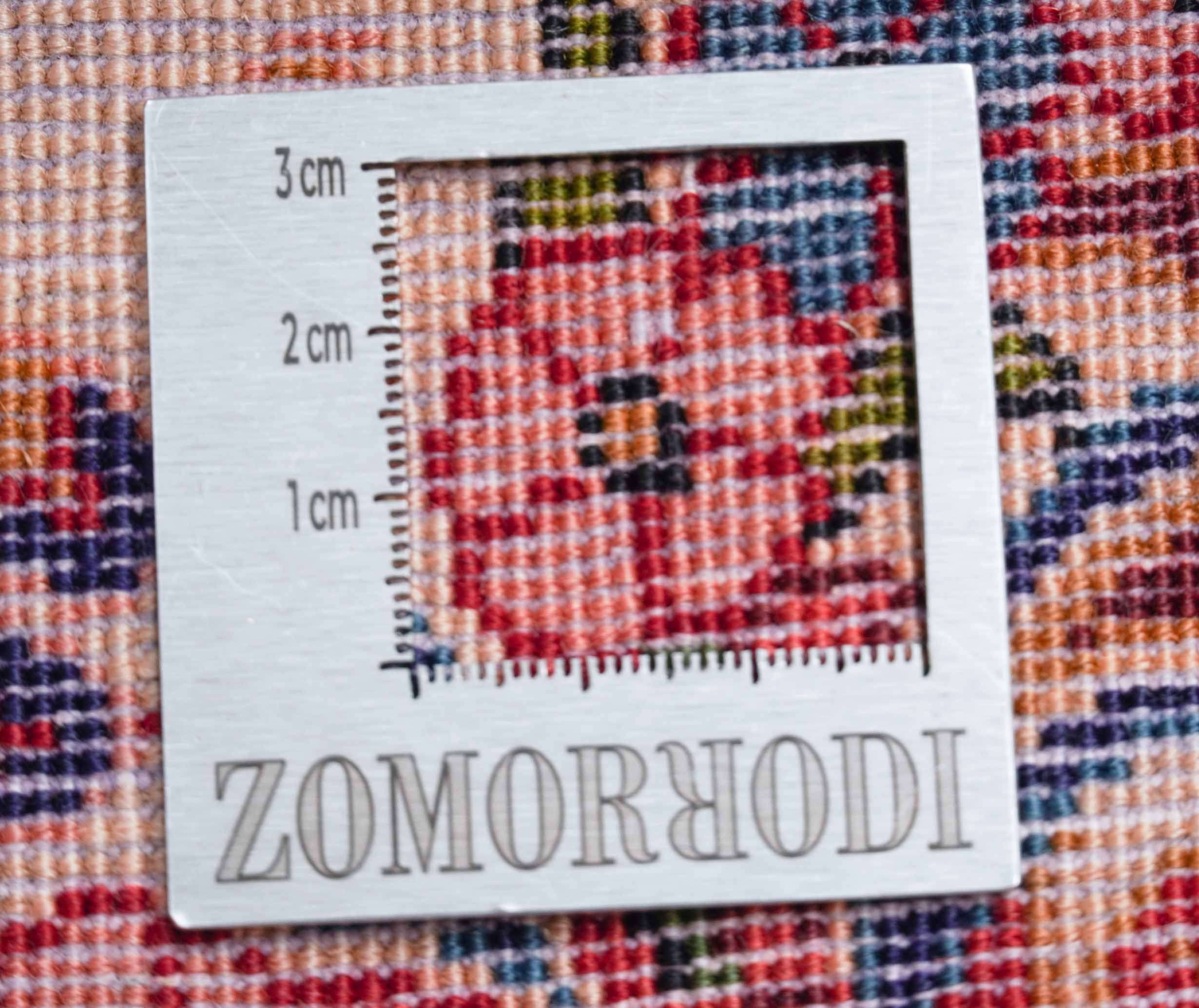 Die üppigen Blumenmotive dieses Saroughs sind elegant und abwechslungsreich gestaltet. Die anmutigen vegetativen Symbole, die Blüten, Blätter und Äste darstellen, sind kunstvoll ineinander verschlungen.