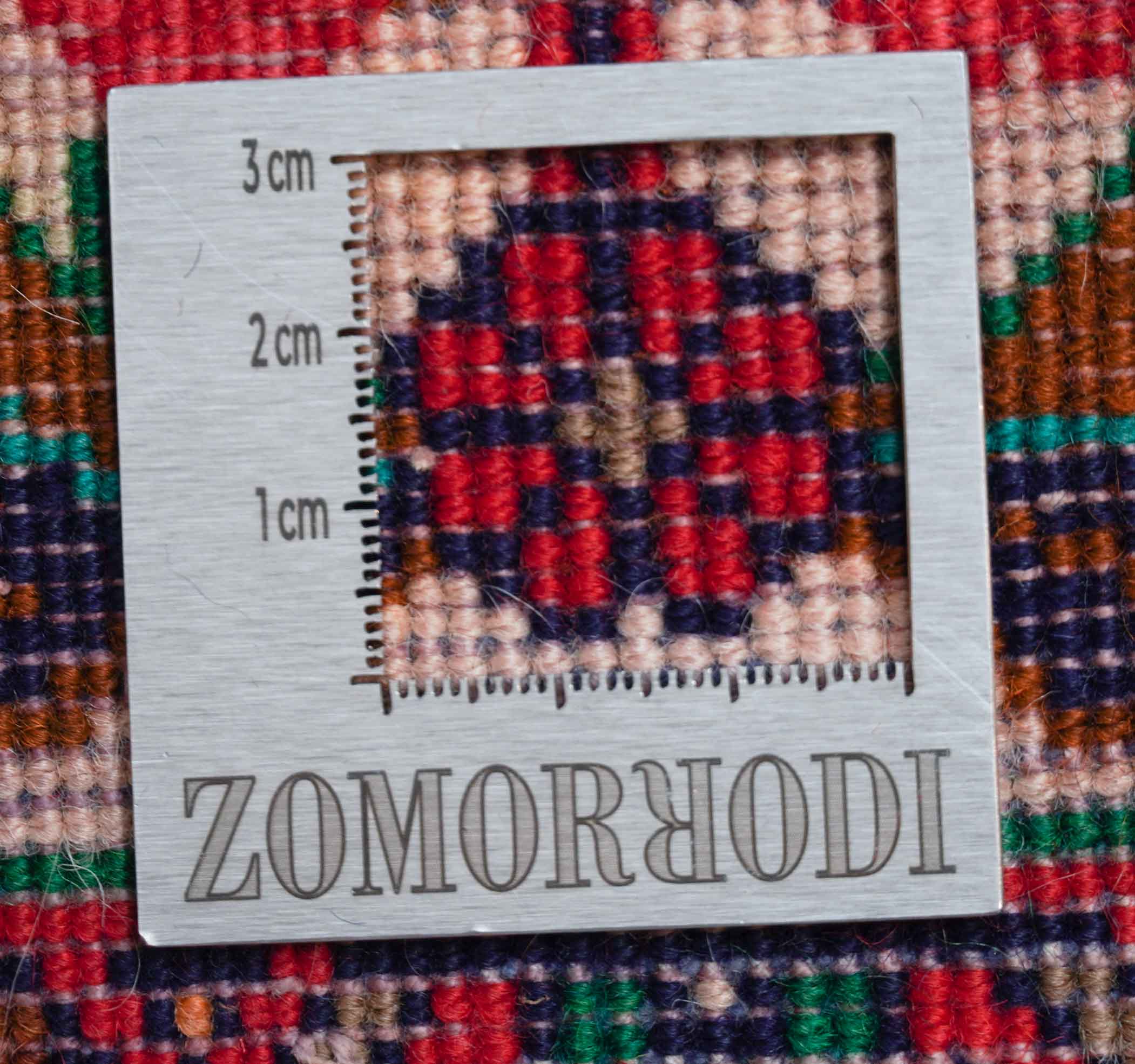 Die üppigen Blumenmotive dieses Saroughs sind elegant und abwechslungsreich gestaltet. Die anmutigen vegetativen Symbole, die Blüten, Blätter und Äste darstellen, sind kunstvoll ineinander verschlungen.