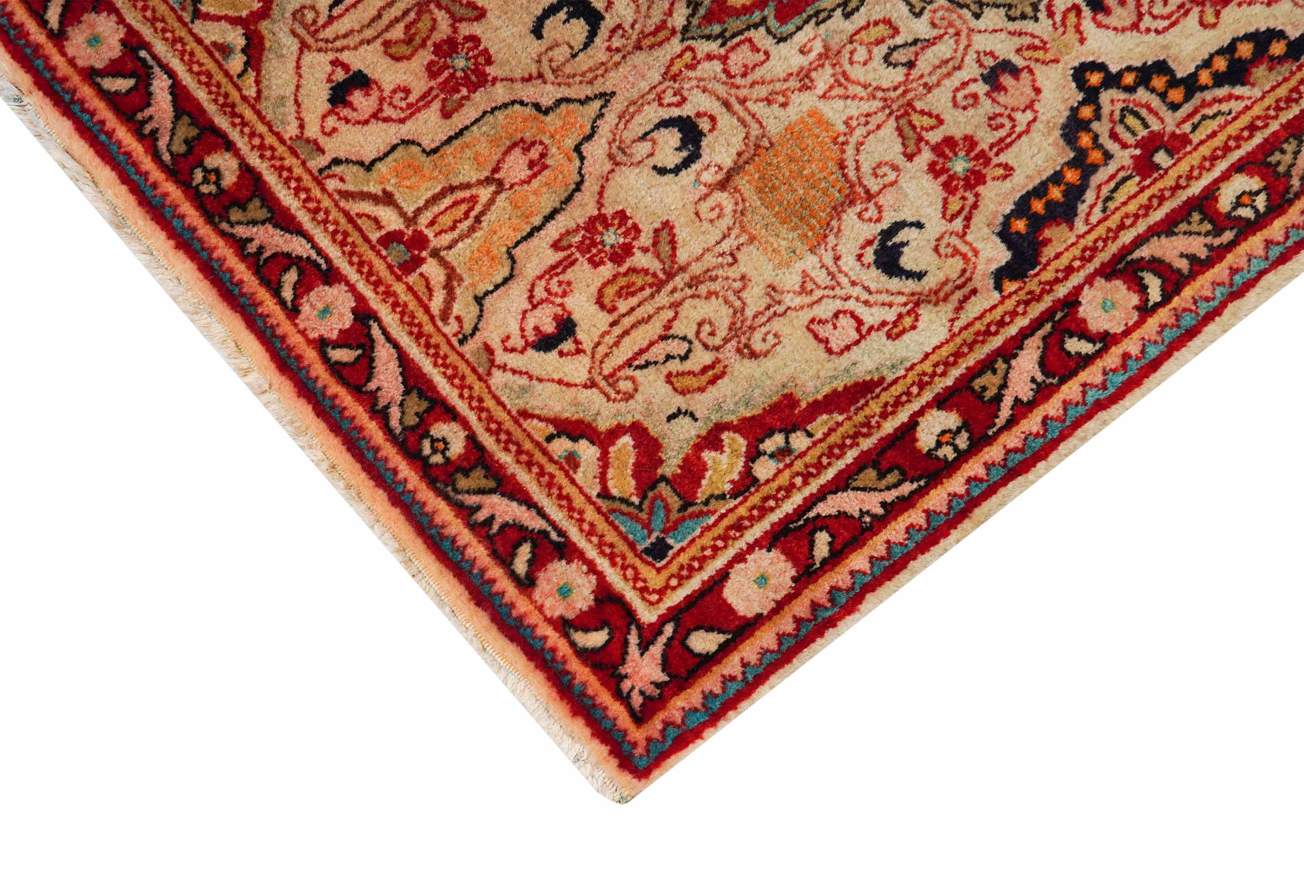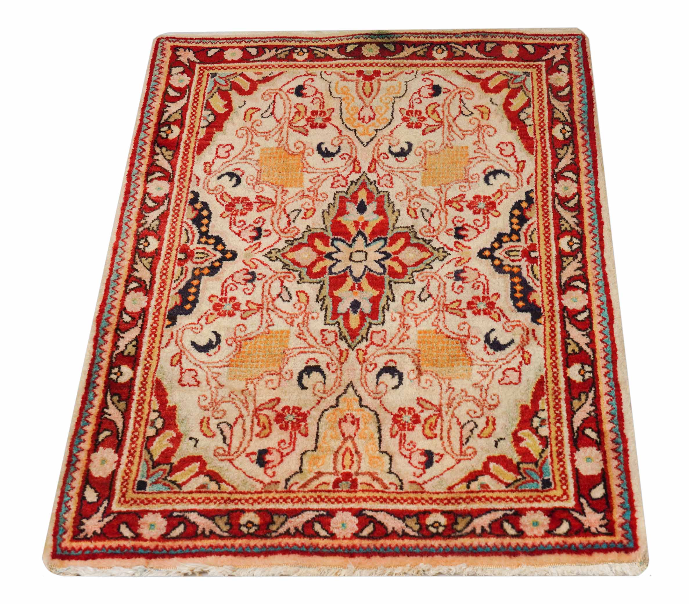 Der Hintergrund dieses Saroughs ist Beige. Der Rand ist in Hellrot gehalten.