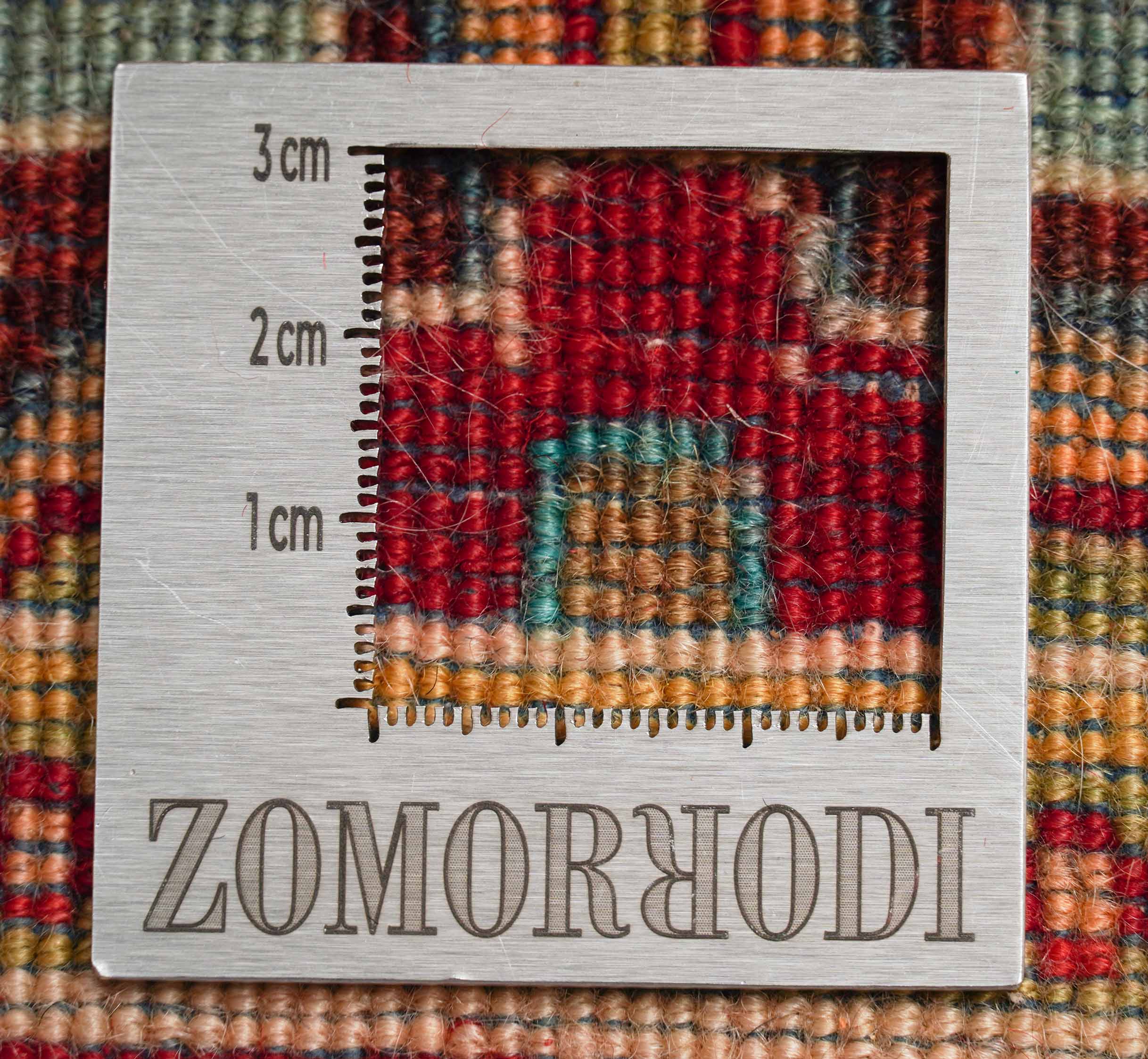 Der Rand des Teppichs wird von einer Umrandung (Bordüre) geziert. Die Bordüre bildet einen schönen Kontrast zum Zentrum.