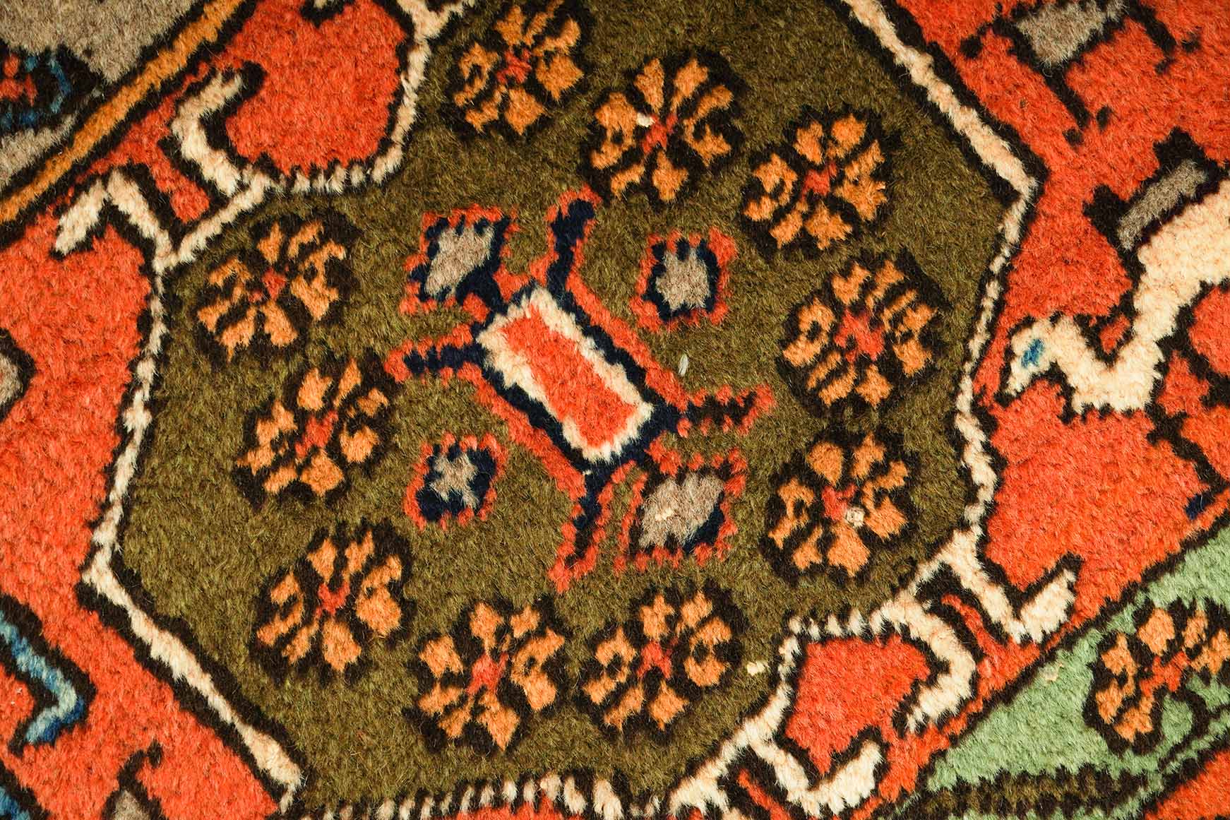 Dieser Täbriz hatte bereits Liebhaber vor Euch. Er wurde ca. 1980 handgeknüpft. Er wurde gründlich gereinigt und ist in einem guten aber unrestaurierten Zustand. Die Fransen können eine Reparatur vertragen. Wir haben diesen Täbriz nicht restauriert, weil wir finden, dass er so wie er ist einen besonderen Charme hat. Wenn ihr das wollt, restaurieren wir den Teppich natürlich gerne für Euch. So oder so wird dieser Täbriz Euch noch für Jahrzehnte Freude bereiten.