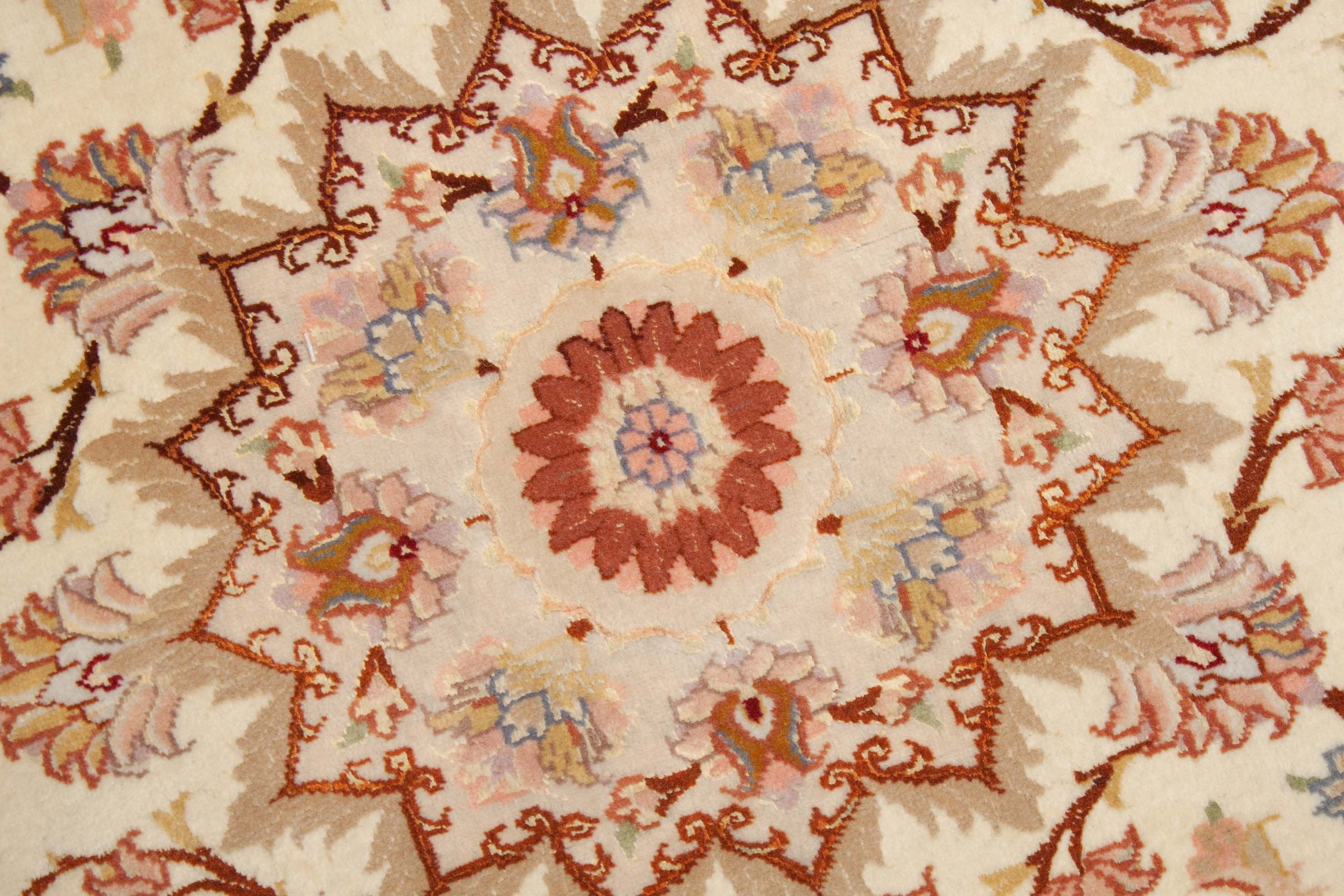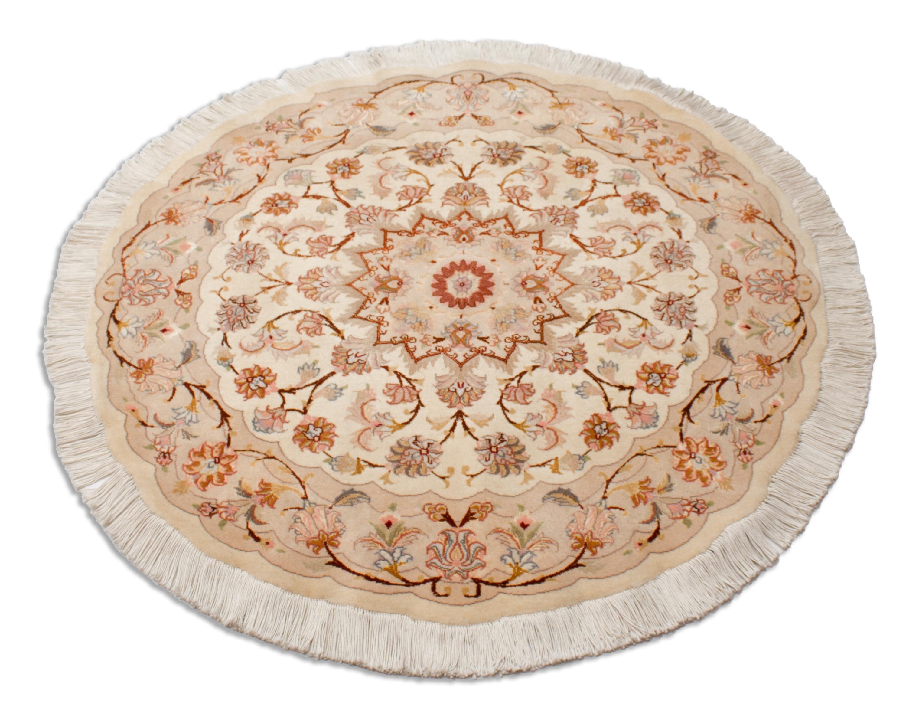 Das runde Format dieses handgeknüpften Täbriz ist sehr selten und eignet sich beispielsweise hervorragend für Räume mit einem runden Ess- oder Wohnzimmertisch.