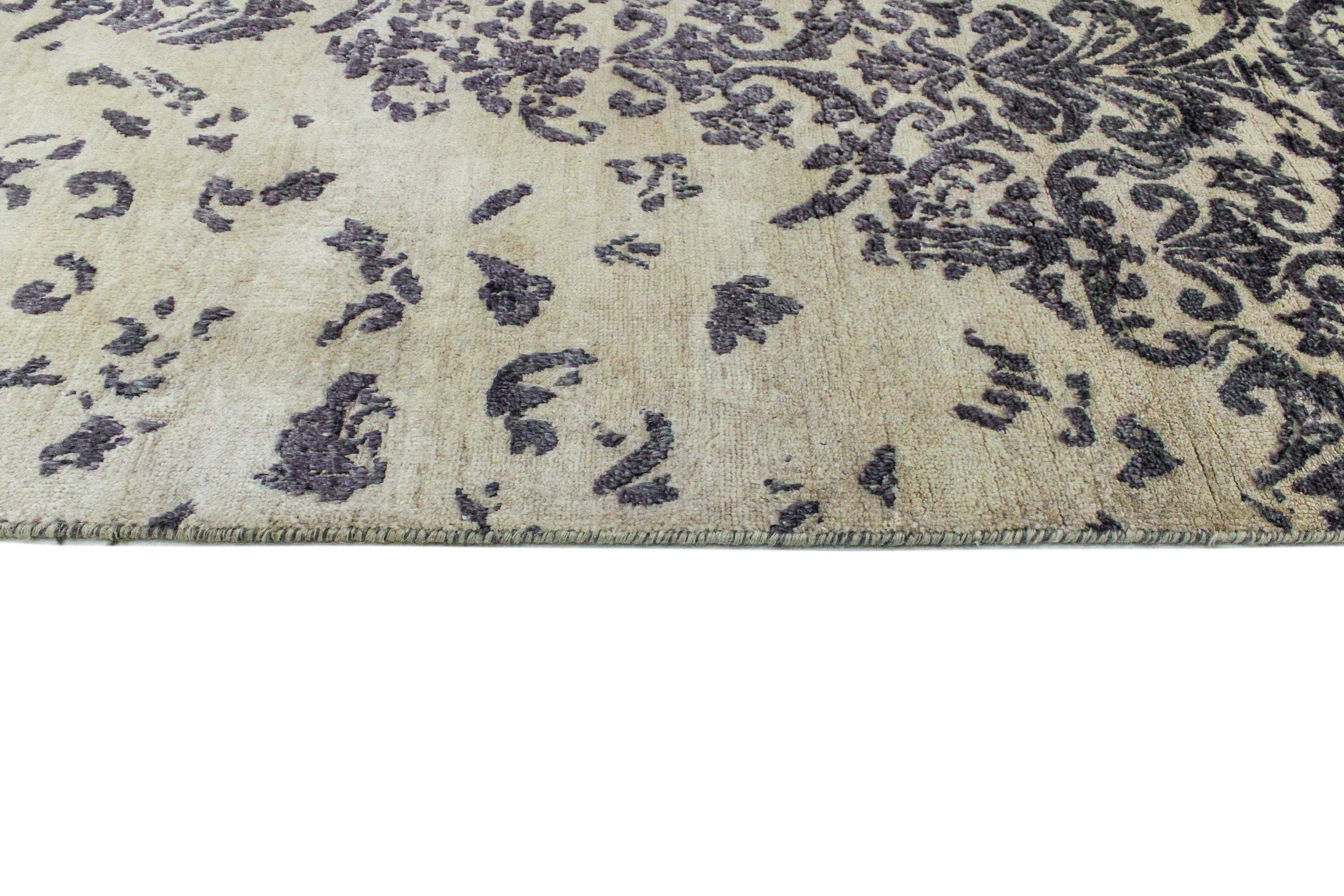 Das klare, abstrakte Design dieses zeitgenössischen Teppichs spricht Menschen, die schlichte, moderne Inneneinrichtung und Architektur lieben besonders an. Die Designidee für diesen Teppich stammt aus Europa. Ohne an die Regeln traditioneller Teppichmuster gebunden zu sein wurde es für den westlichen Kunst- und Inneneinrichtungsstil entwickelt. Das ist dabei keine ganz neue Entwicklung. Die Wurzeln des europäischen Teppichdesigns gehen zurück auf Art-Deco-Teppiche, die zwischen den späten zwanziger und fünfziger Jahren nach westlichen Vorgaben hergestellt wurden.