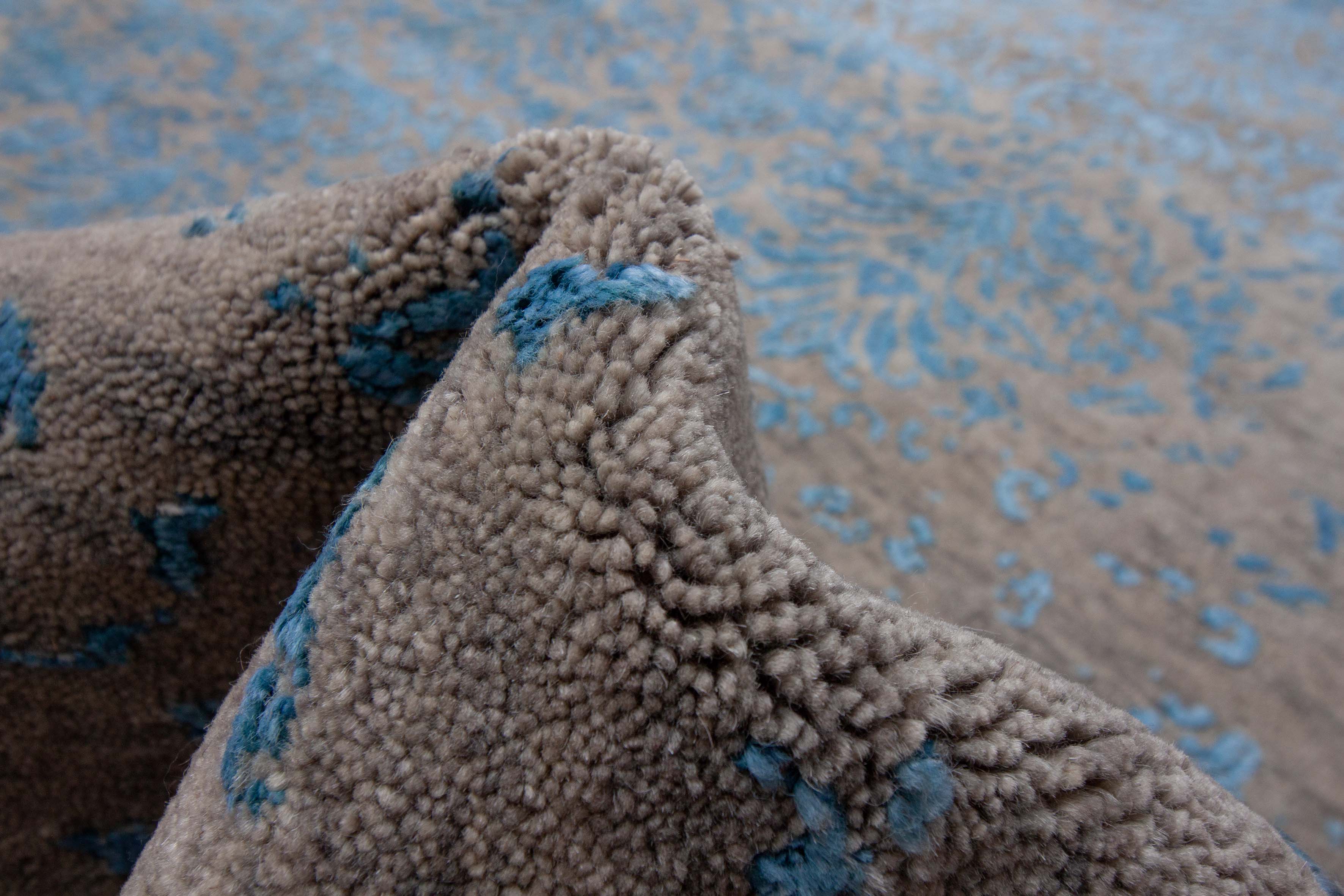 Einzelne Bereiche des Musters haben einen höheren Flor als die übrigen Teile dieses Teppichs. Die Muster moderner Teppiche werden tendenziell schlichter und abstrakter. Das Spiel mit unterschiedlichen Florhöhen ist neu und hat aufwändigere und aufdringlichere Muster abgelöst. Dadurch das Teile des Musters zweidimensional hervorgehoben wurden, wirkt der Teppich jedoch keinesfalls langweilig. Die Akzentuierung ist außergewöhnlich und hat eine einzigartige Wirkung.