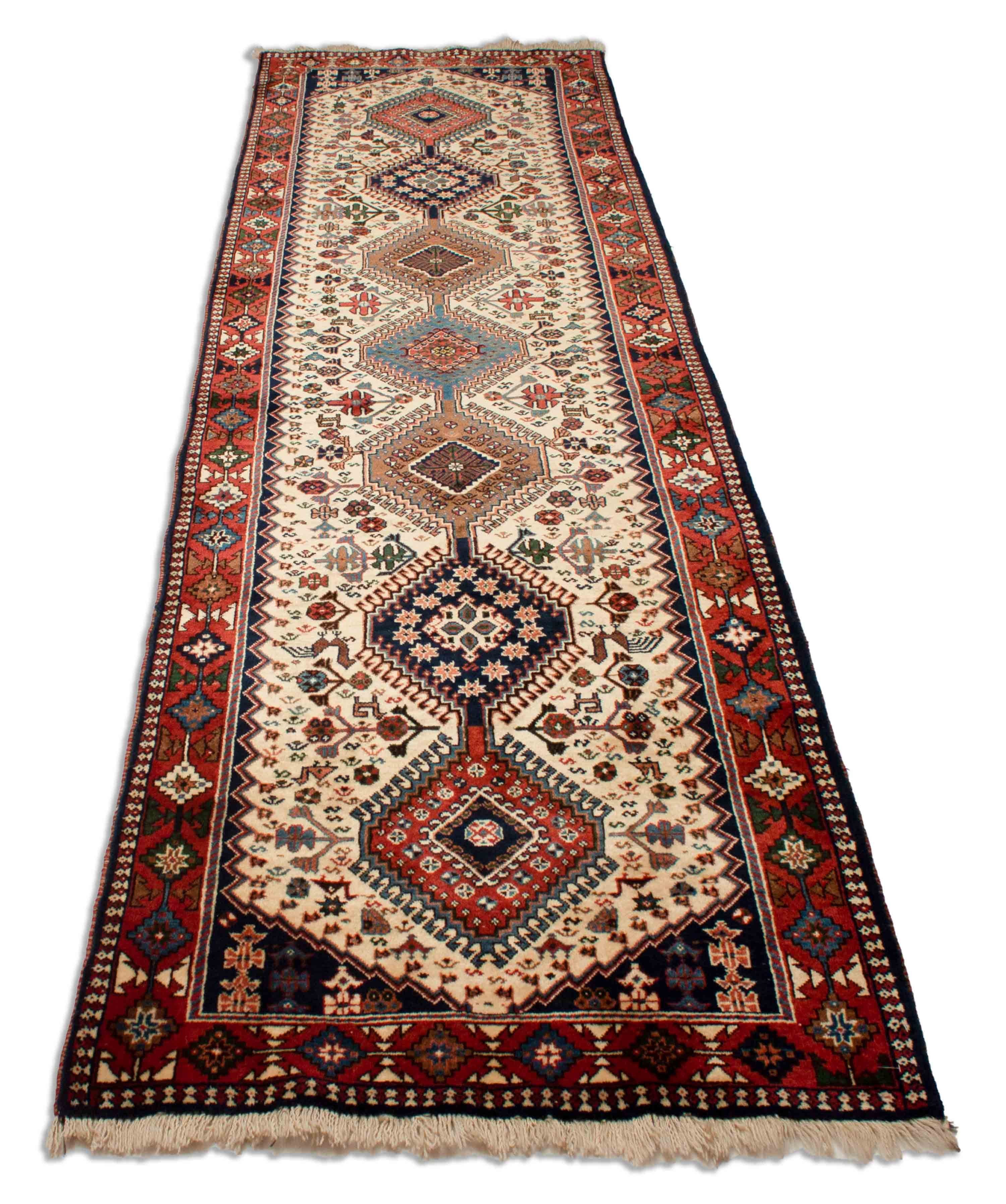 Yalameh gehört zum Knüpfgebiet von Isfahan im westlichen Teil Zentralirans. Charakteristisches Merkmal ist die Buntheit und Farbenfreudigkeit. Typisch sind Farbkompositionen mit Königsblau, Tiefrot und einem dezenten Grün. Für Nomadenteppiche ist die Knüpfung sehr fein und die Schur sehr kurz.