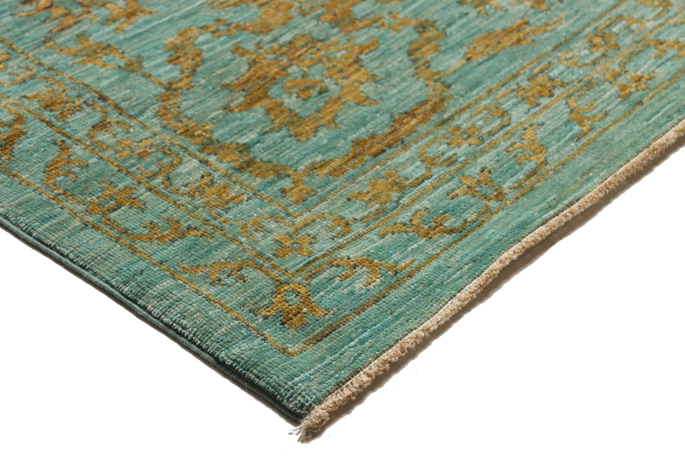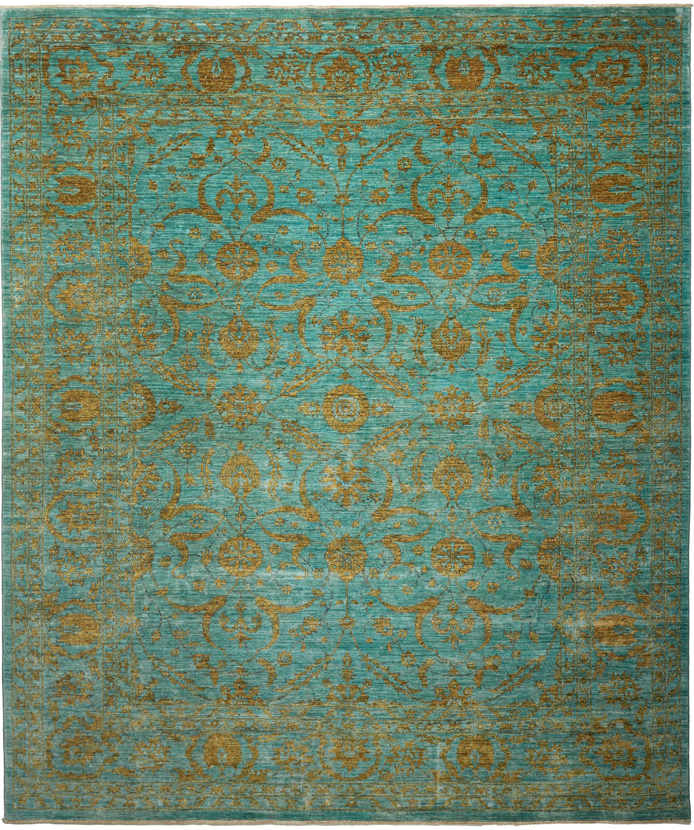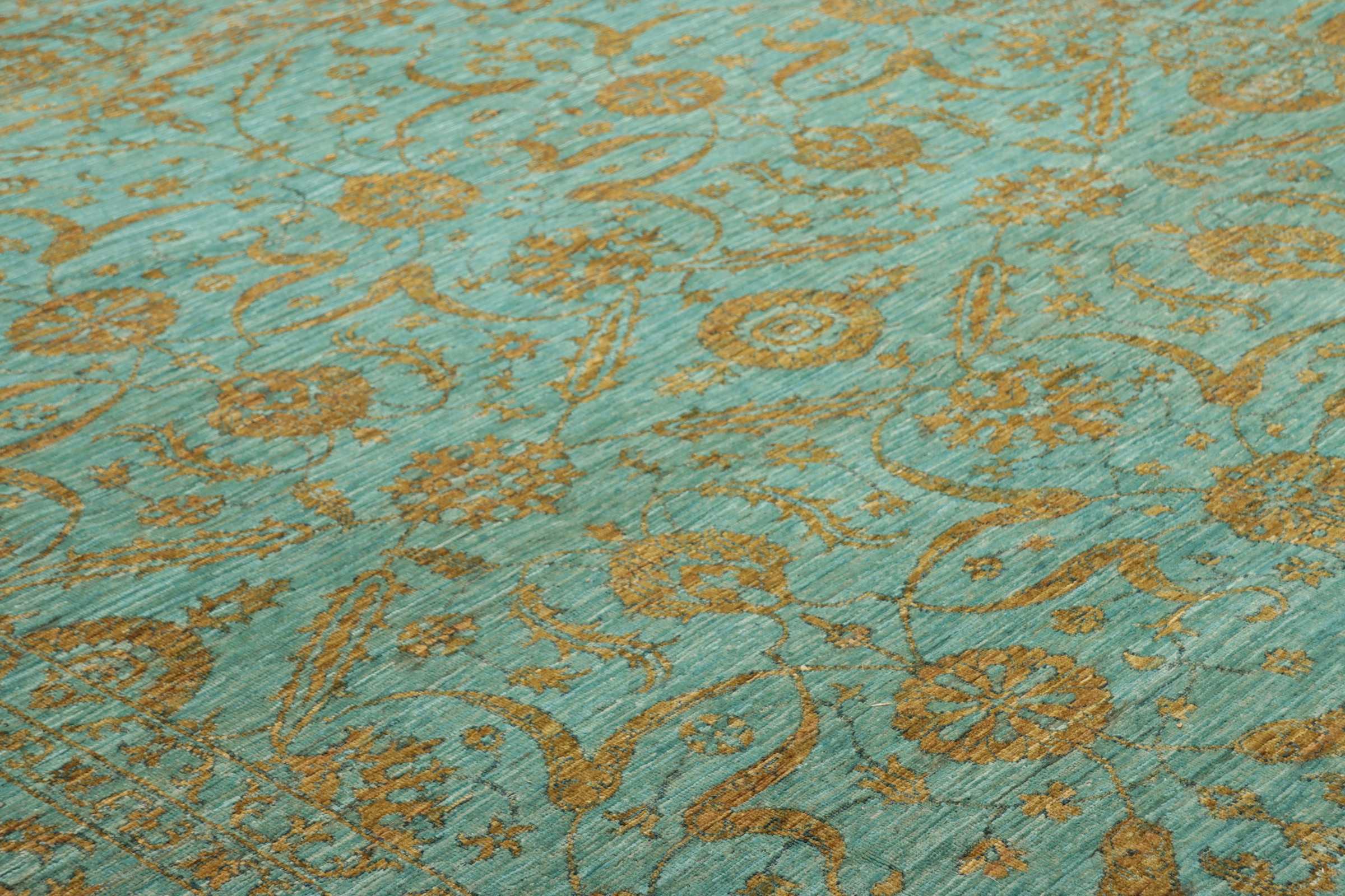 Floraler Ziegler, türkis durchgemustert mit zentralem Medaillon und Bordüre