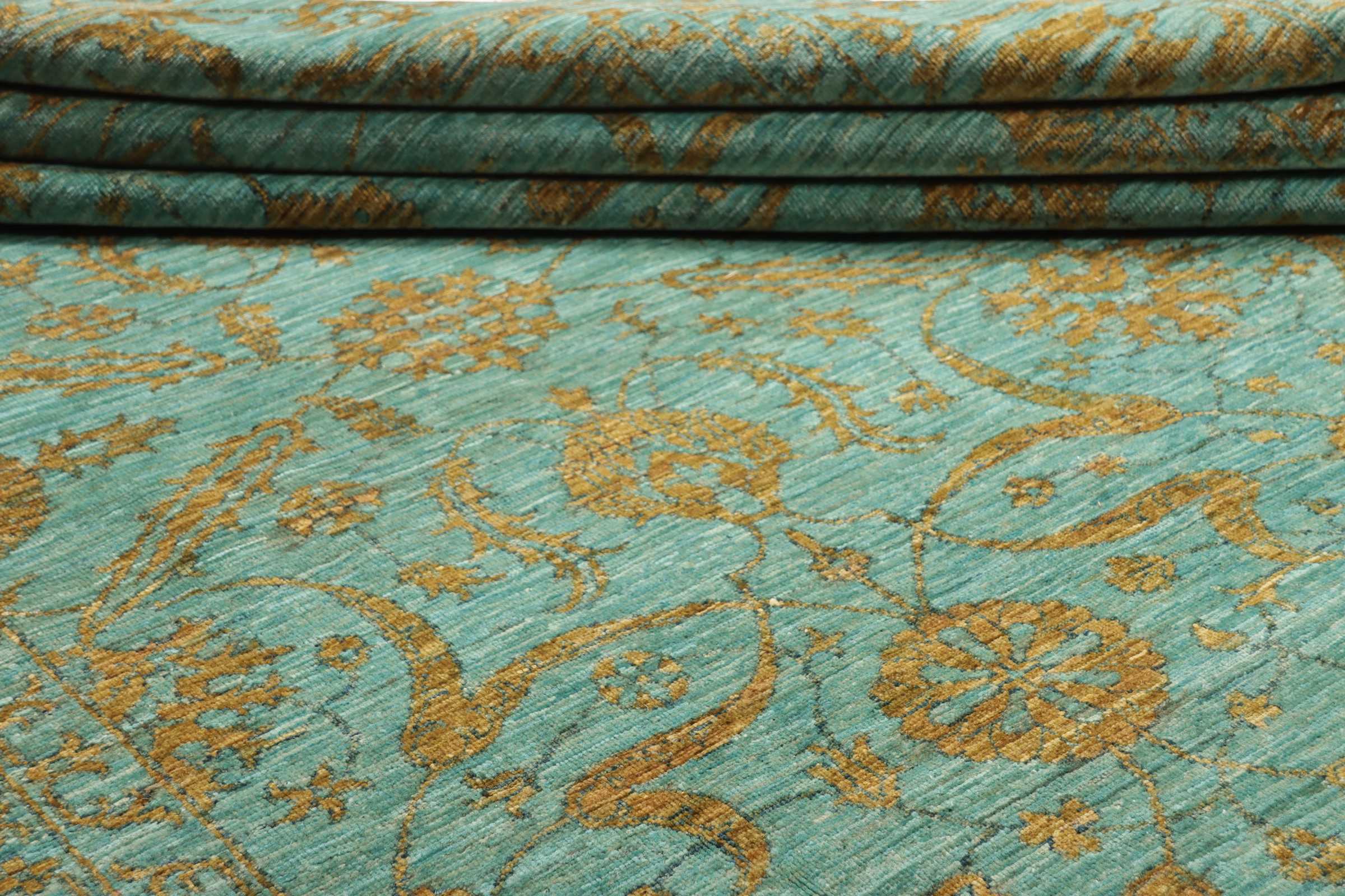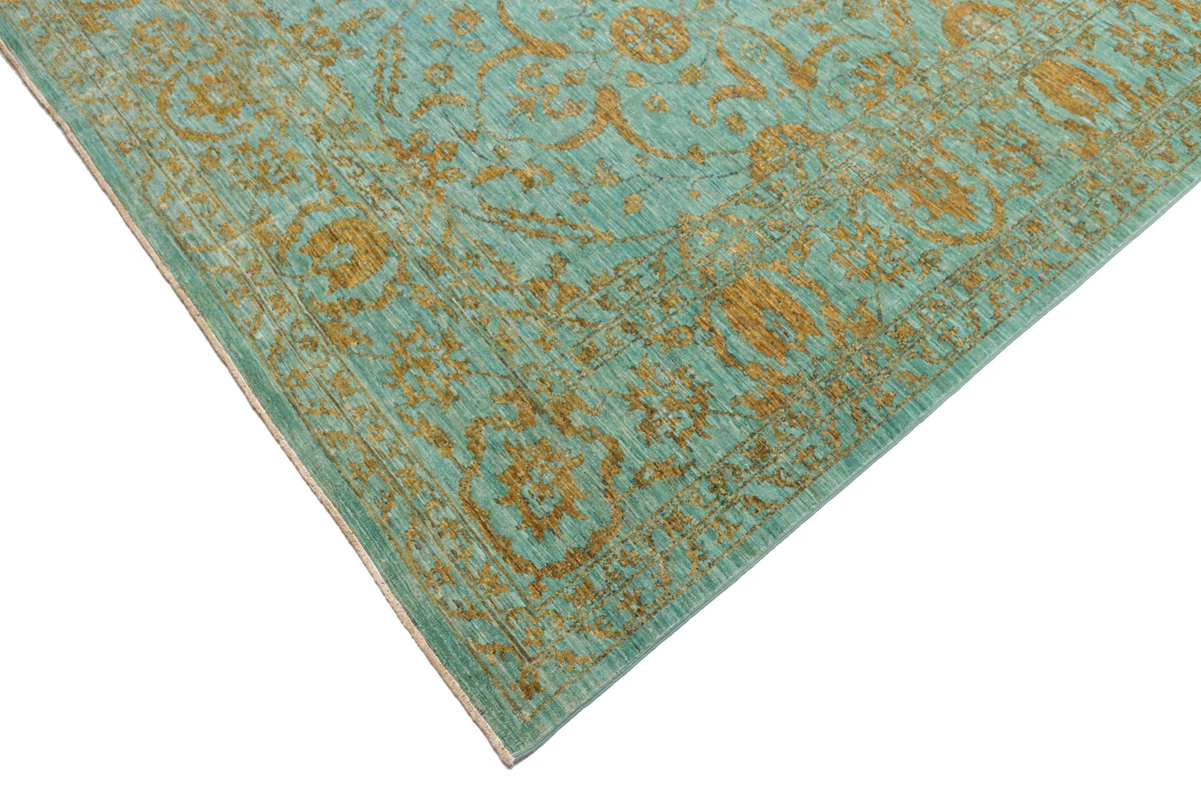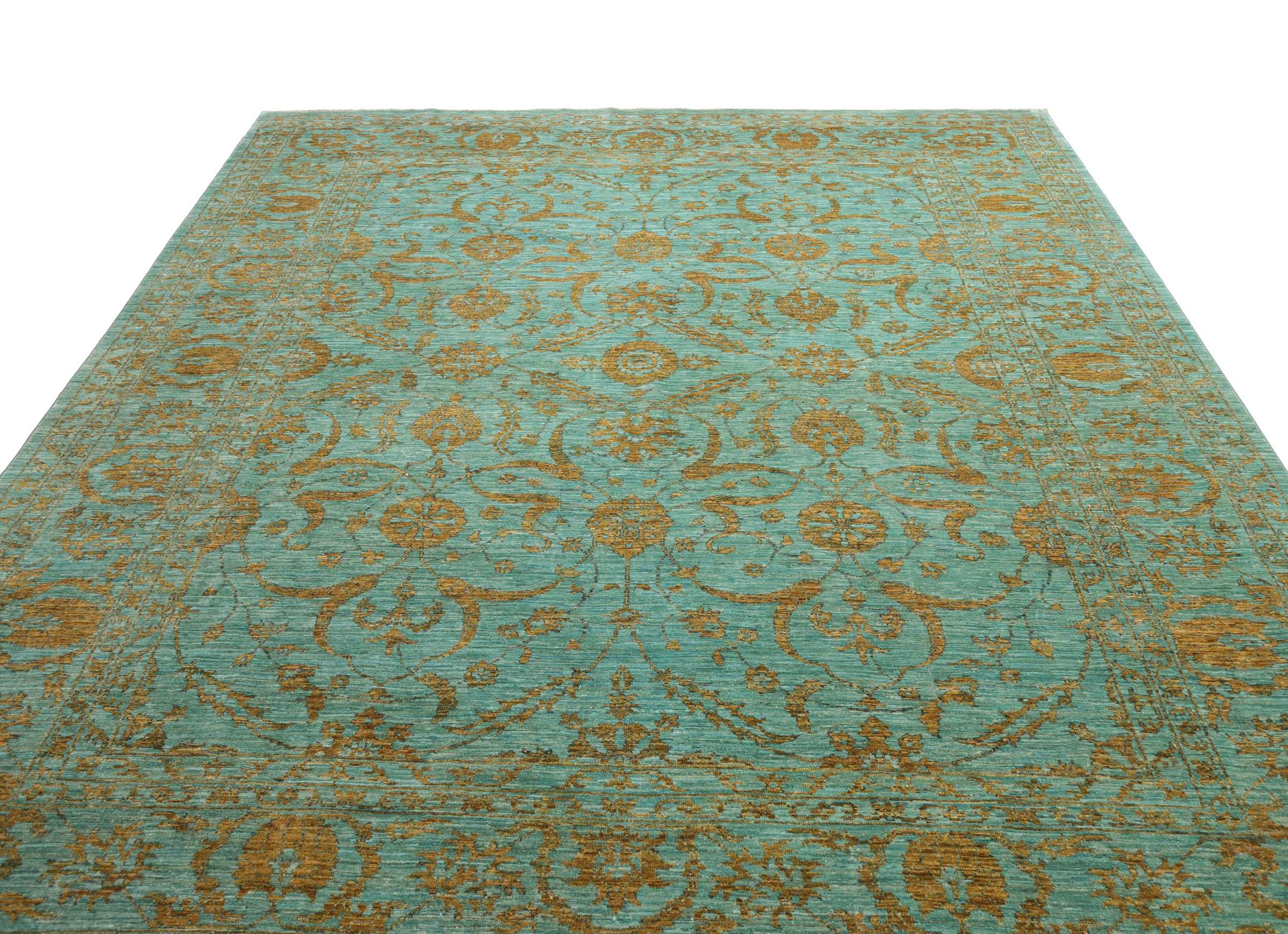 Floraler Ziegler, türkis durchgemustert mit zentralem Medaillon und Bordüre