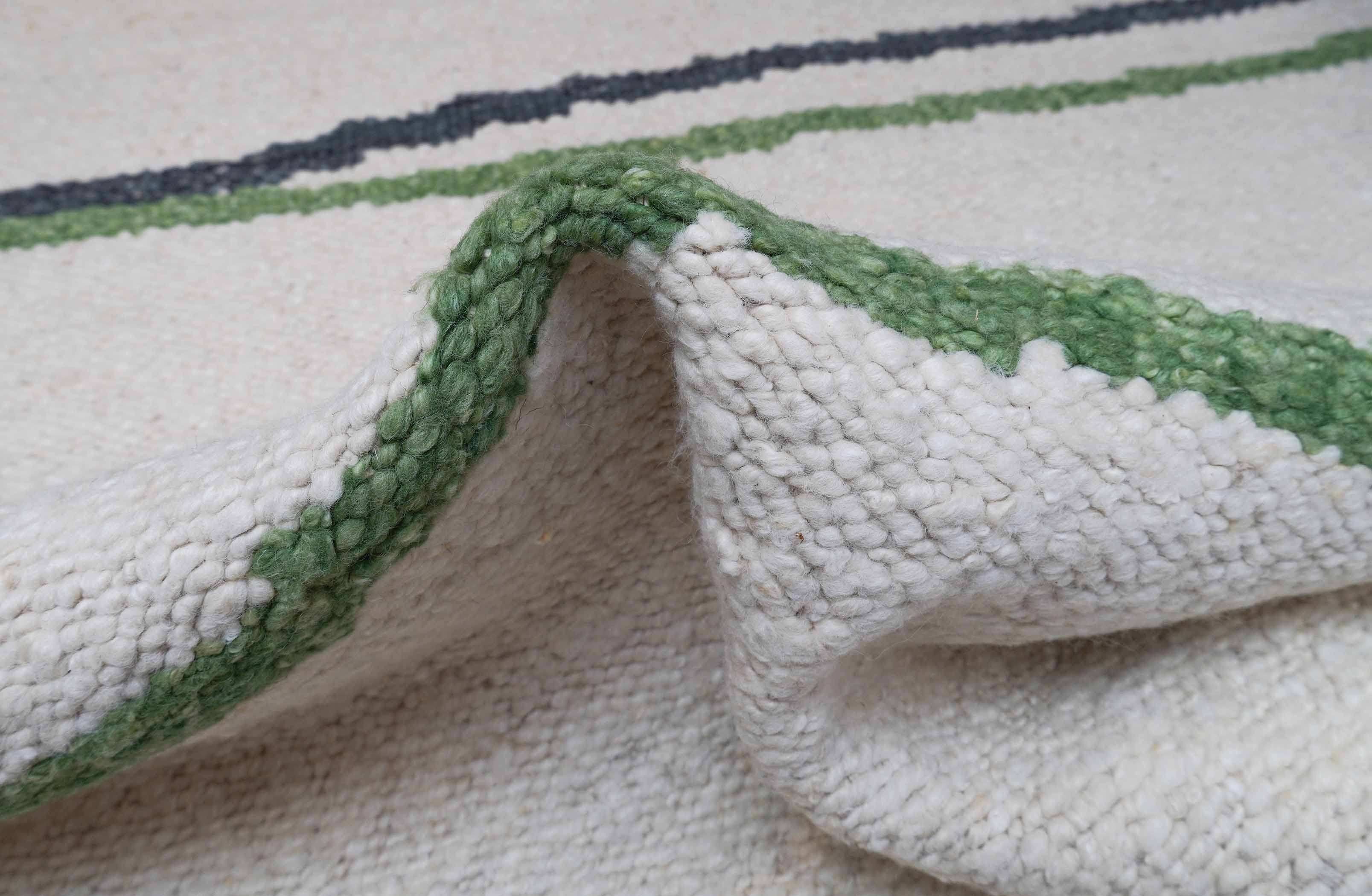 Kelims (auch Kilim, Qilim) wurden traditionell nur für den Eigengebrauch hergestellt. Nomaden und Bauern benutzten und benutzen ihre Kelims flach gewebten Kelims als Teppiche auf dem Boden, aber auch als Zelt- oder Wandbehänge, Decken, Kissen oder Taschen. Mit unseren neuen Kelims haben wir die traditionelle iranische Webtechnik weiterentwickelt, um deutlich festere und dickere Kelims herstellen zu können. Sie sind daher extrem gemütlich, weich und gut gepolster, im Gegensatz zu den herkömmlichen Kelim Teppichen. Diese neue Generation der Kelims nennen wir Berber Kelim. Die Wolle unserer Berber Kelims wird, je nach Bedarf, zunächst gefärbt und dann von hand zu einem recht groben Garn gekämmt. Anschließend wird der Teppich aus dem Garn gewebt und es entsteht eine außergewöhnliche Textur und ein perfekt gemütlicher Teppich.
